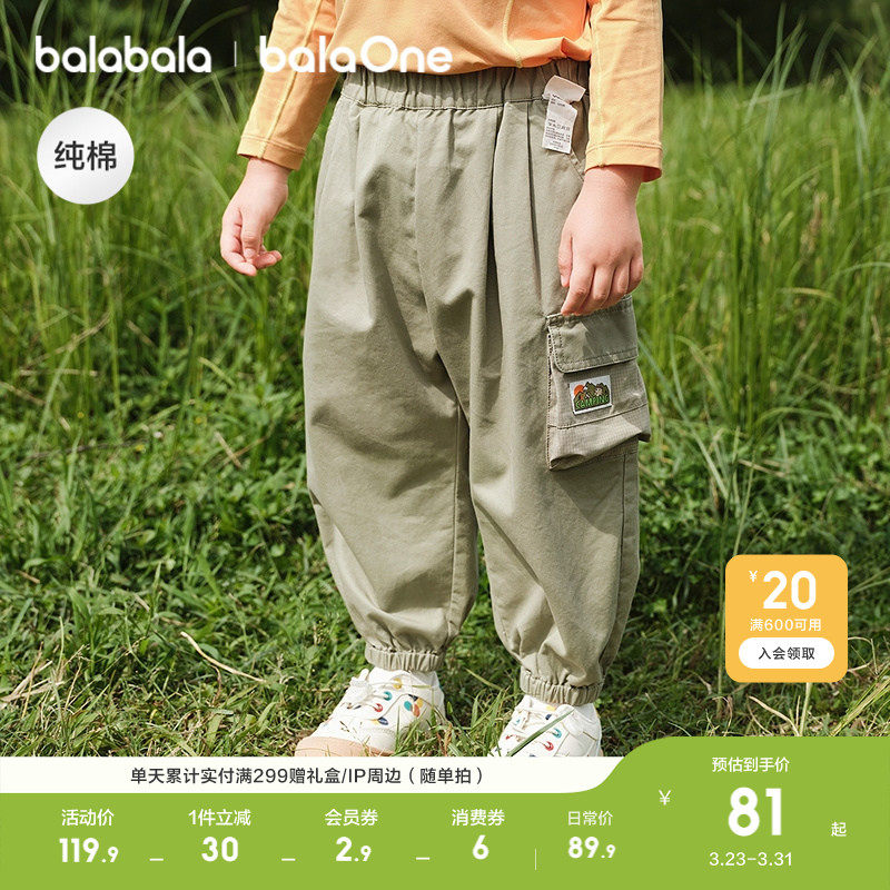 巴拉巴拉童装宝宝长裤男童2026春装休闲儿童宽松束脚户外工装裤子