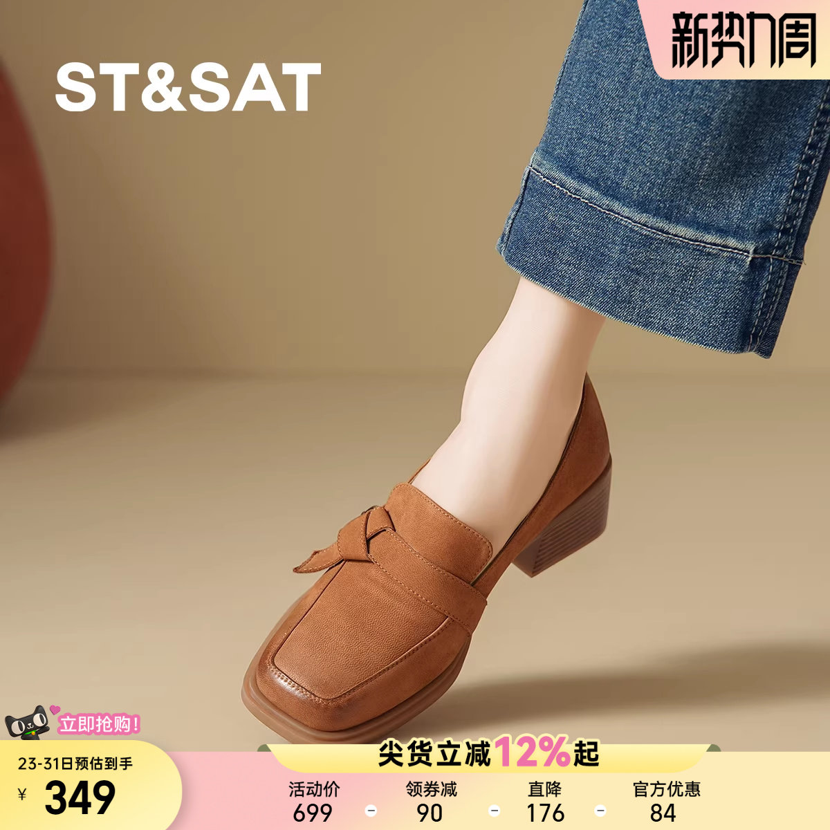 星期六秋季新款法式乐福鞋一脚蹬懒人女单鞋粗跟不累脚通勤小皮鞋