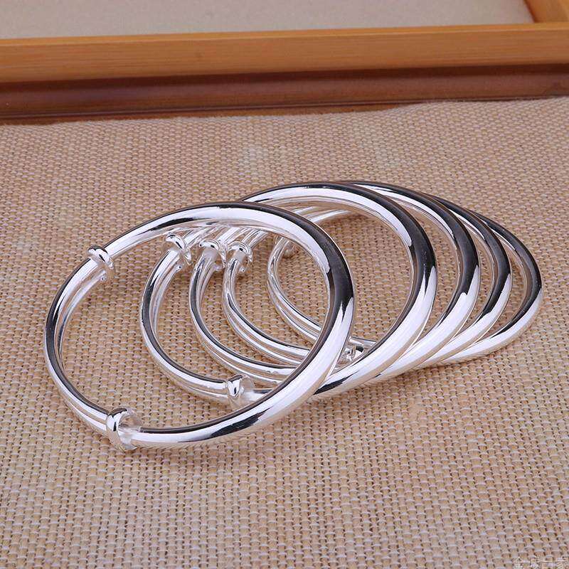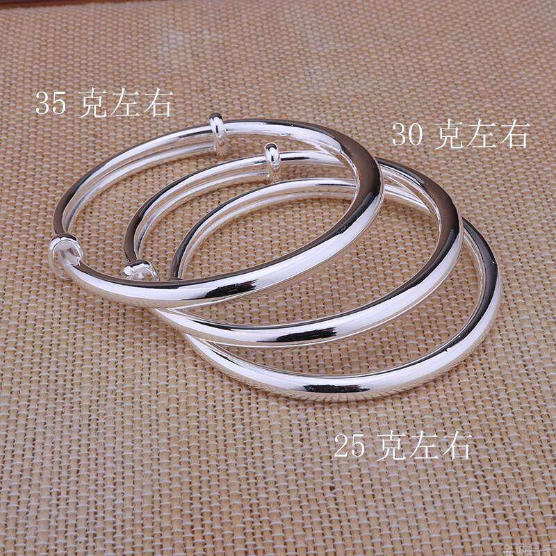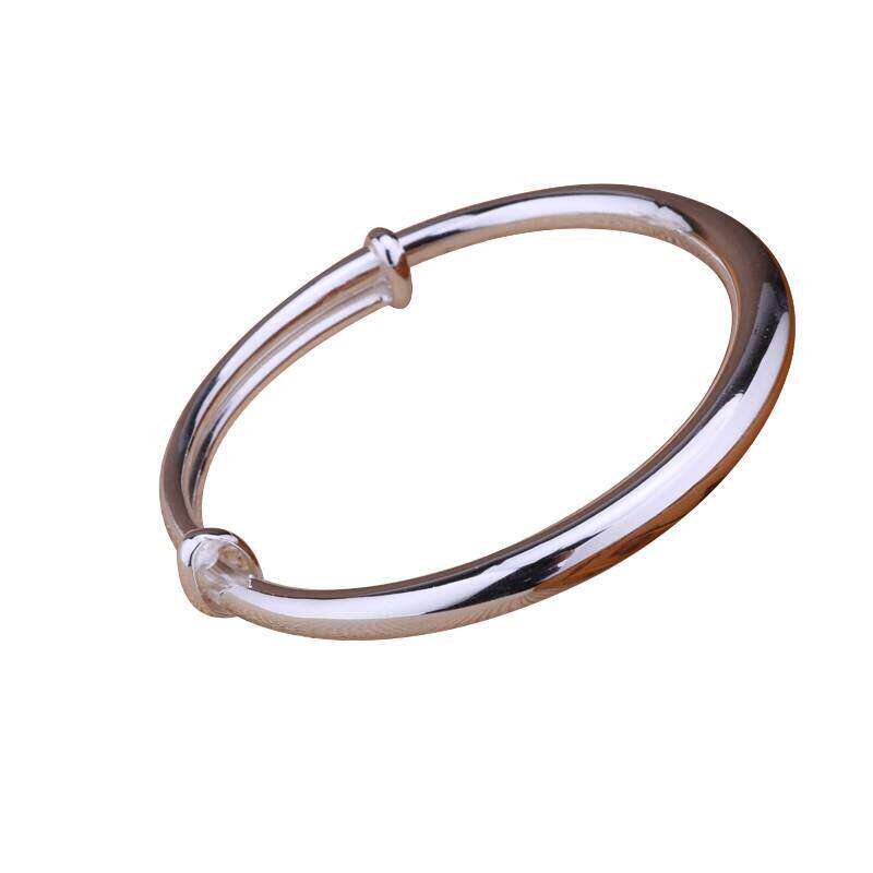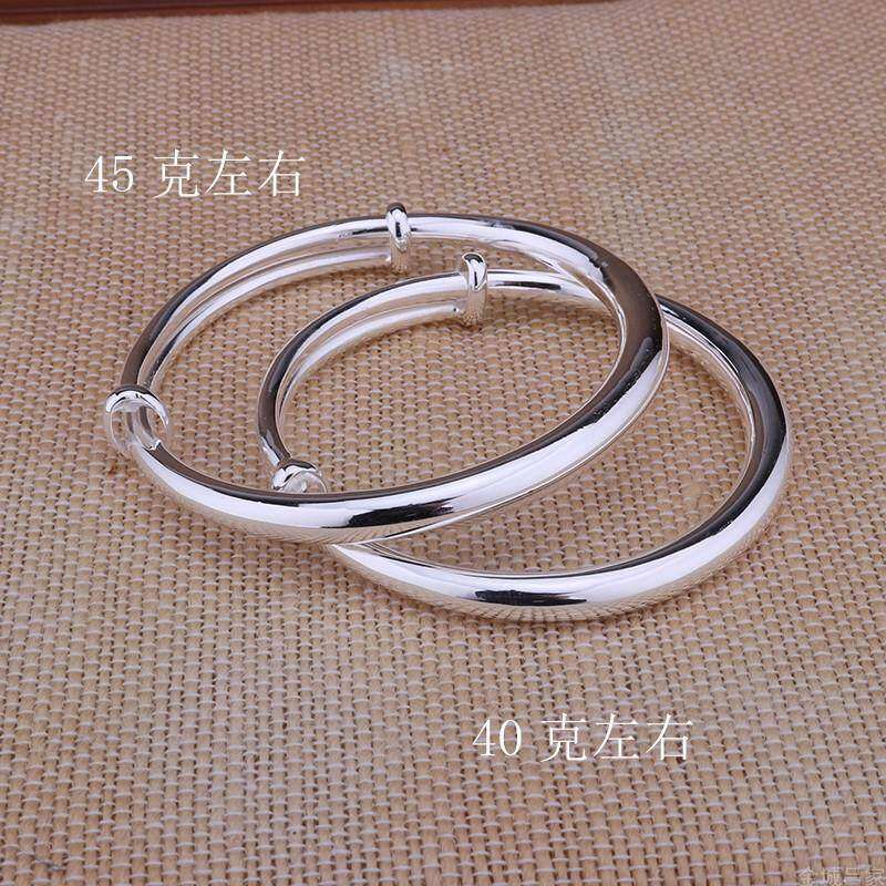 幂琳纯银9999银手镯简约光面推拉扣手镯男女款伸缩时尚民族风刻字