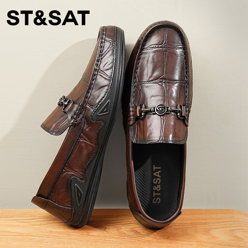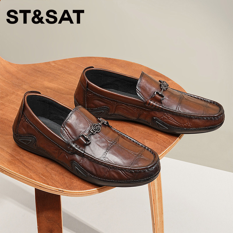 St&Sat/星期六豆豆鞋男士真皮新款高级一脚蹬皮鞋休闲驾车乐福鞋