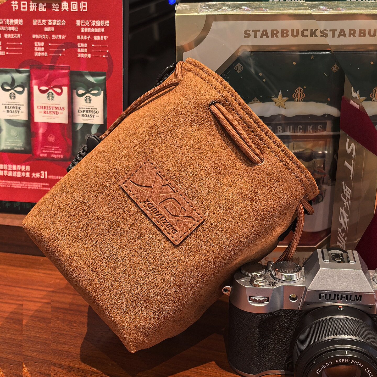 适用富士佳能R50索尼康收纳包复古反绒皮单肩包大容量抽绳相机包