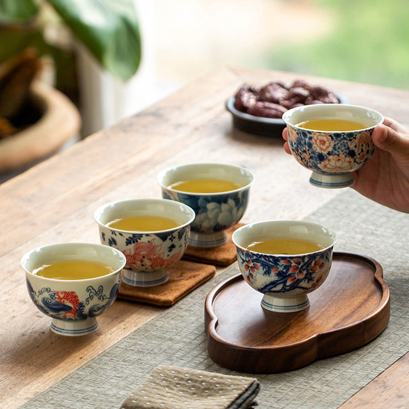 景德镇老陶泥青花山水高档主人杯功夫茶具品茗杯单个陶瓷茶杯大号
