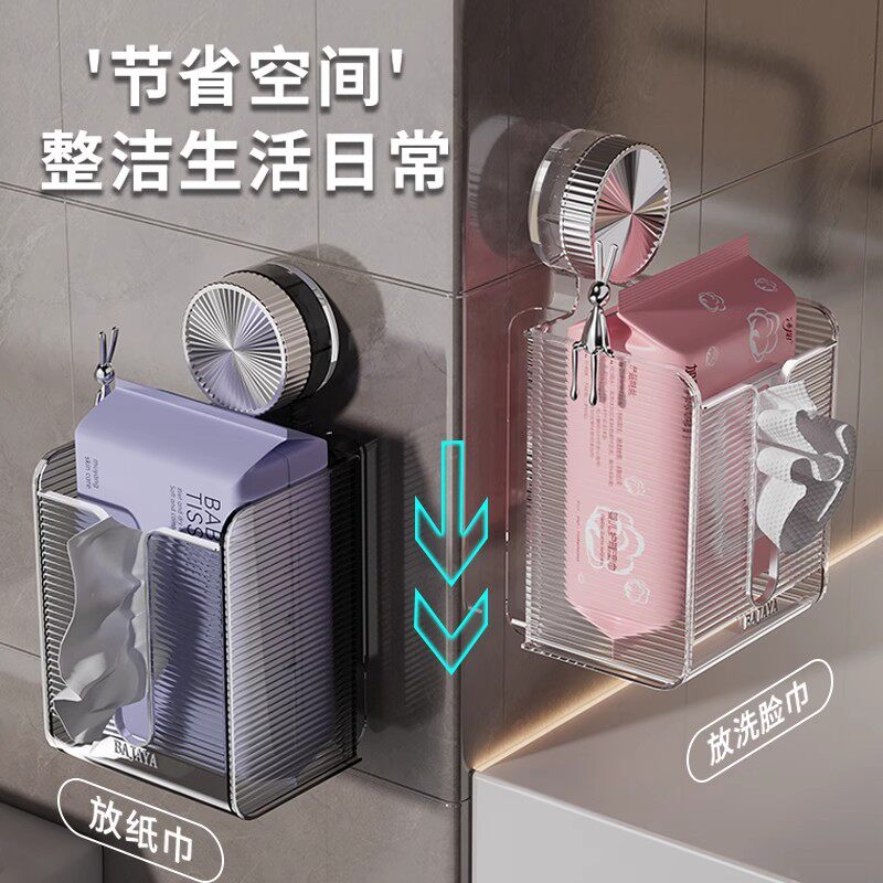 吸盘纸巾盒家用卫生间抽纸盒倒挂厕所纸置物架壁挂式洗脸巾收纳盒
