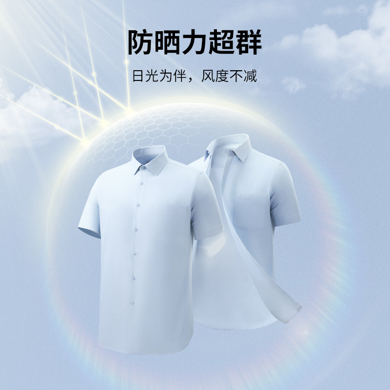 【凉感防晒】金利来夏季白衬衫透气吸湿排汗商务宽松短袖衬衣男款