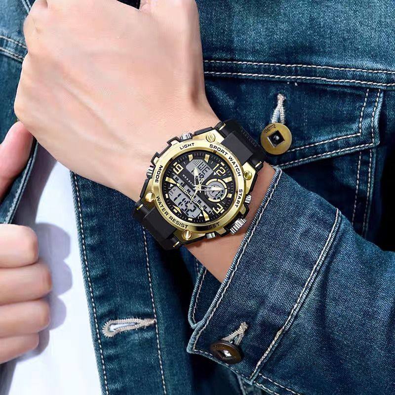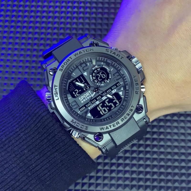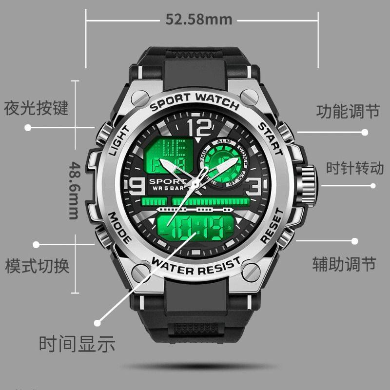 战狼手表户外多功能防水夜光双显男士运动电子男大表盘金属腕表