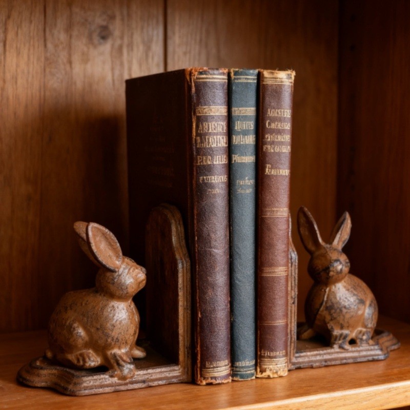 包邮促销原单欧美复古铸铁兔子书档创意书立时尚书靠书房书柜装饰