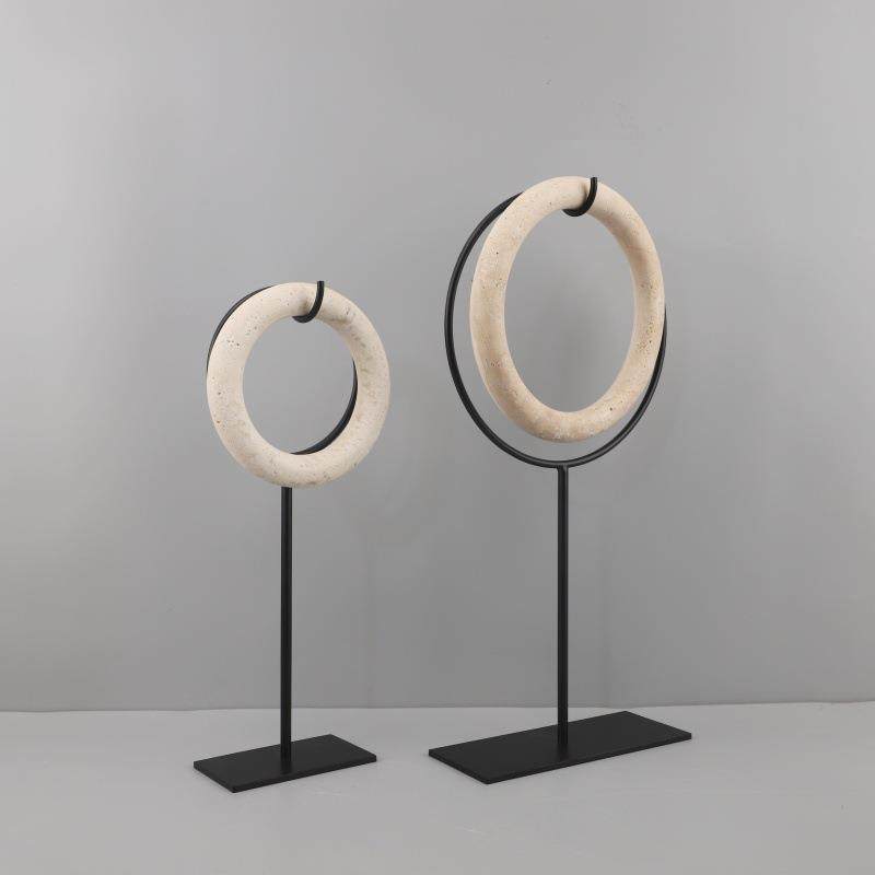 新中式创意绞丝圆环树脂摆件样板房家居玄关客厅软装饰品桌面摆设