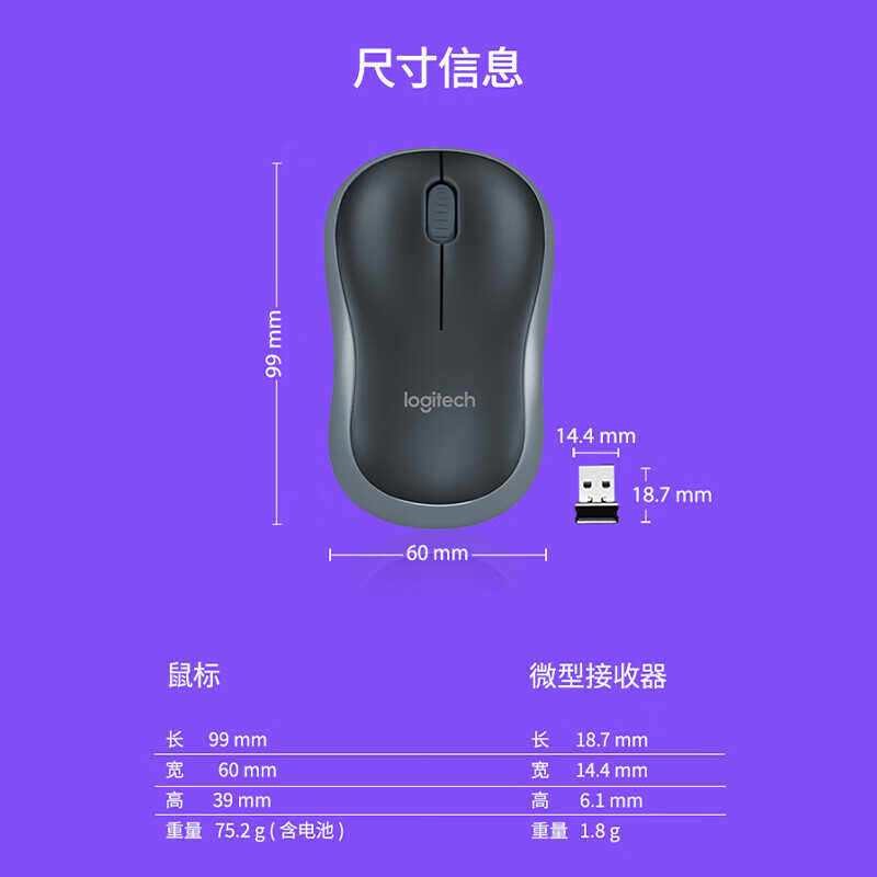 罗技M186无线鼠标办公笔记本台式电脑光电鼠标2.4GHz