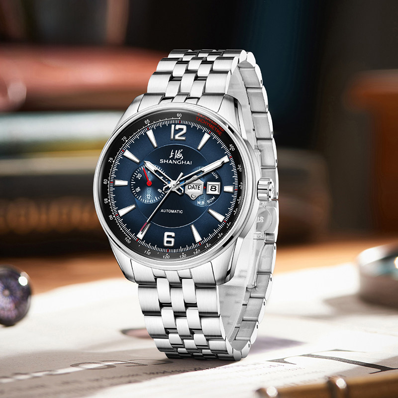 上海手表商务日历自动机械表大表盘防水夜光表官方新款男腕表6027