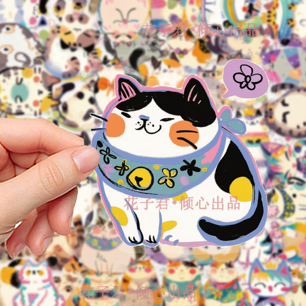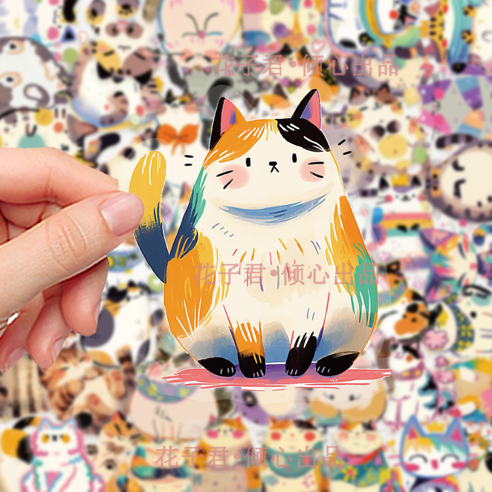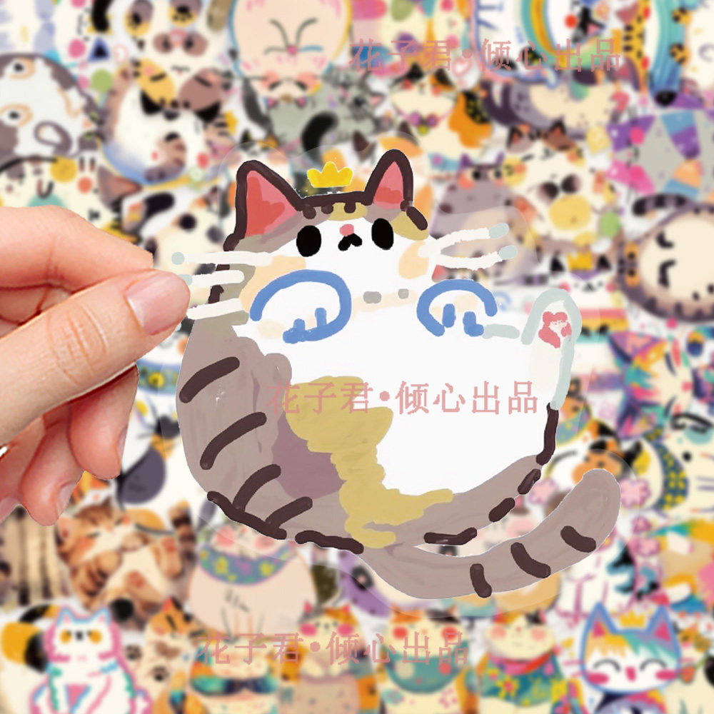 100张原创彩绘百变猫咪PET贴纸卡通可爱猫猫搞怪趣味小表情贴画
