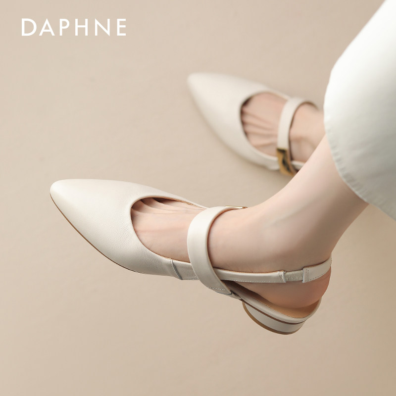 达芙妮包头凉鞋女2026新款夏季女鞋平底尖头外穿粗跟法式低跟单鞋