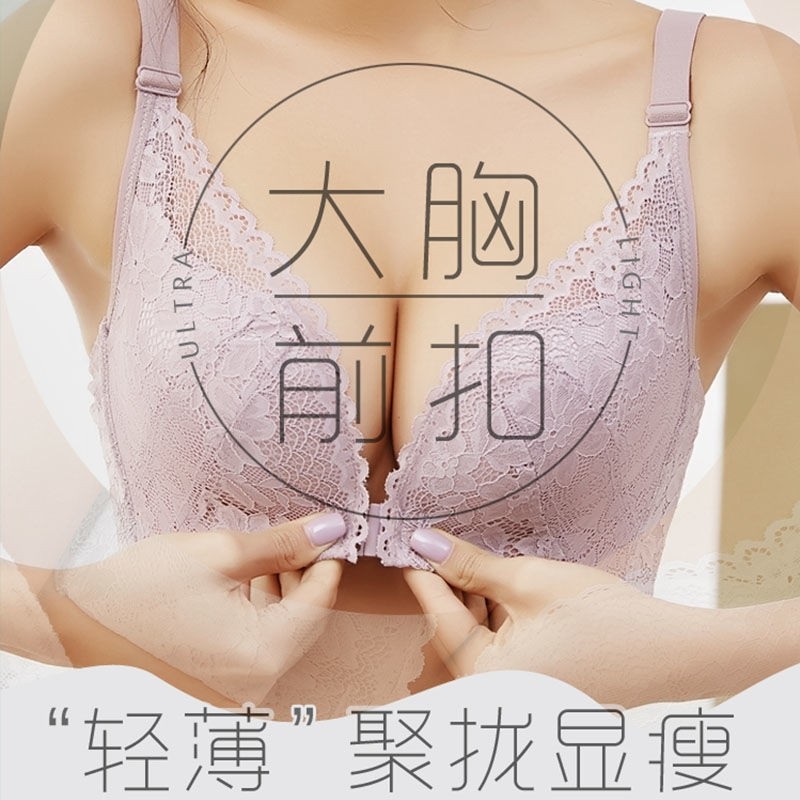 前扣文胸罩超薄款无钢圈聚拢大胸显小防下垂蝴蝶蕾丝美背女士内衣
