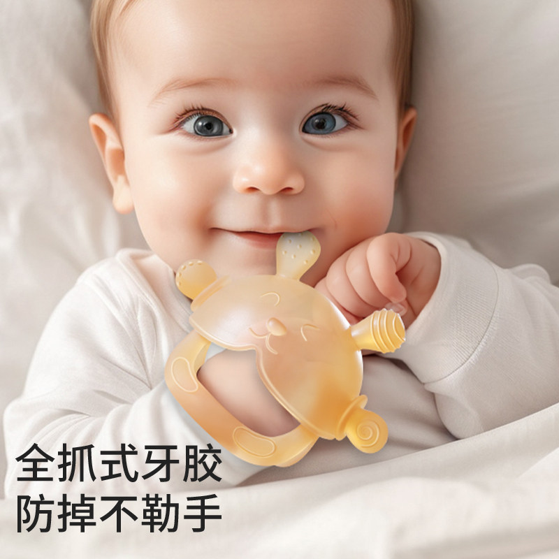 婴儿牙胶小月龄磨牙棒小蘑菇咬胶安抚宝宝硅胶0-12个月防吃手神器