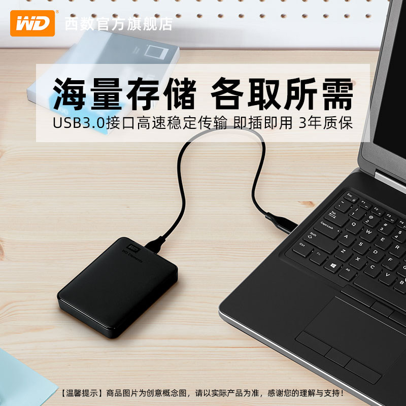 WD西部数据移动硬盘1t elements西数1tb高速电脑机械大容量数据