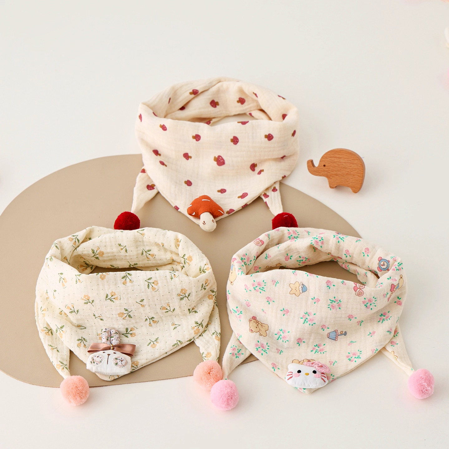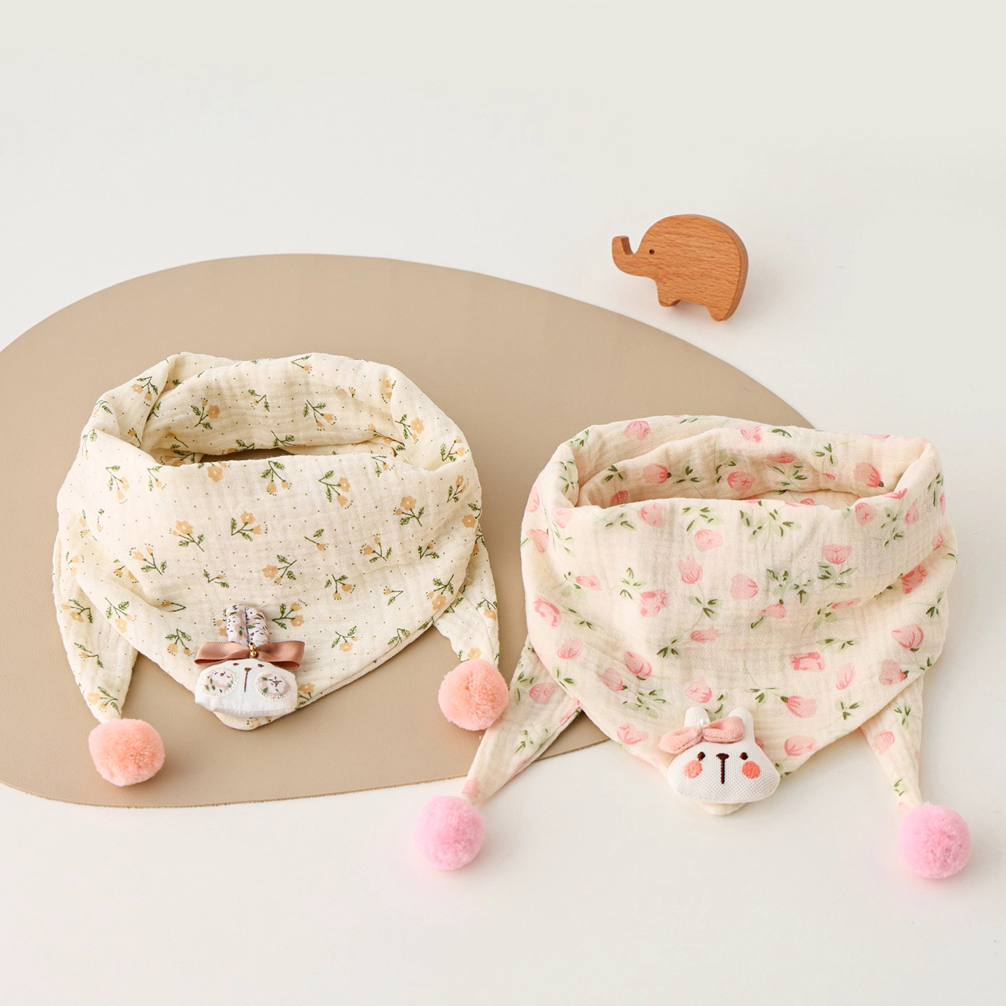 2025婴儿围巾春秋薄款纯棉纱布宝宝三角巾男女儿童防风保暖口水巾