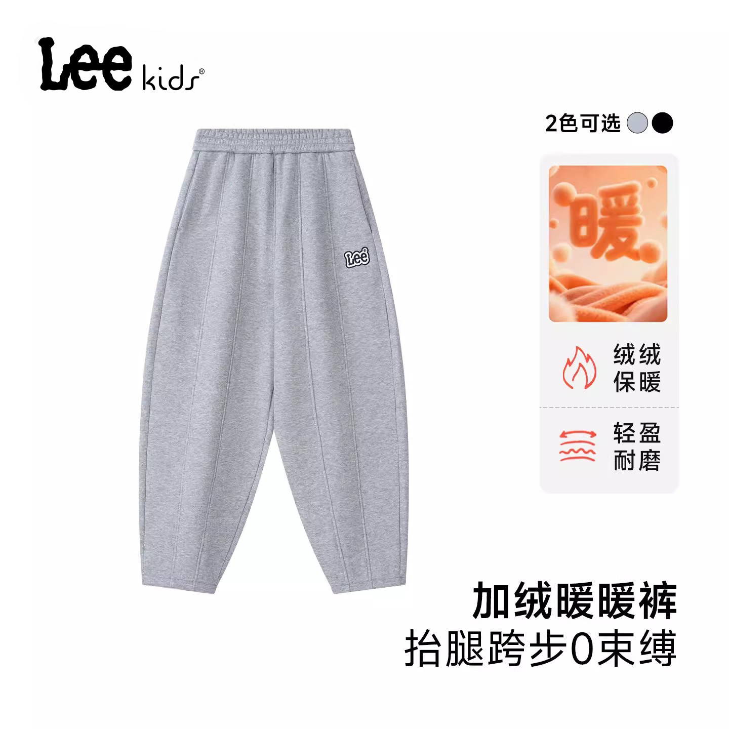 Lee kids儿童加绒保暖洋气哈伦裤卫裤保暖宽松针织运动工装裤子