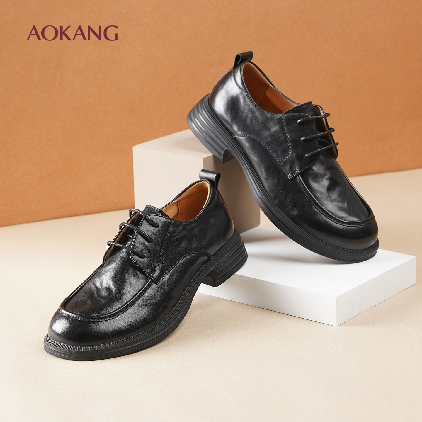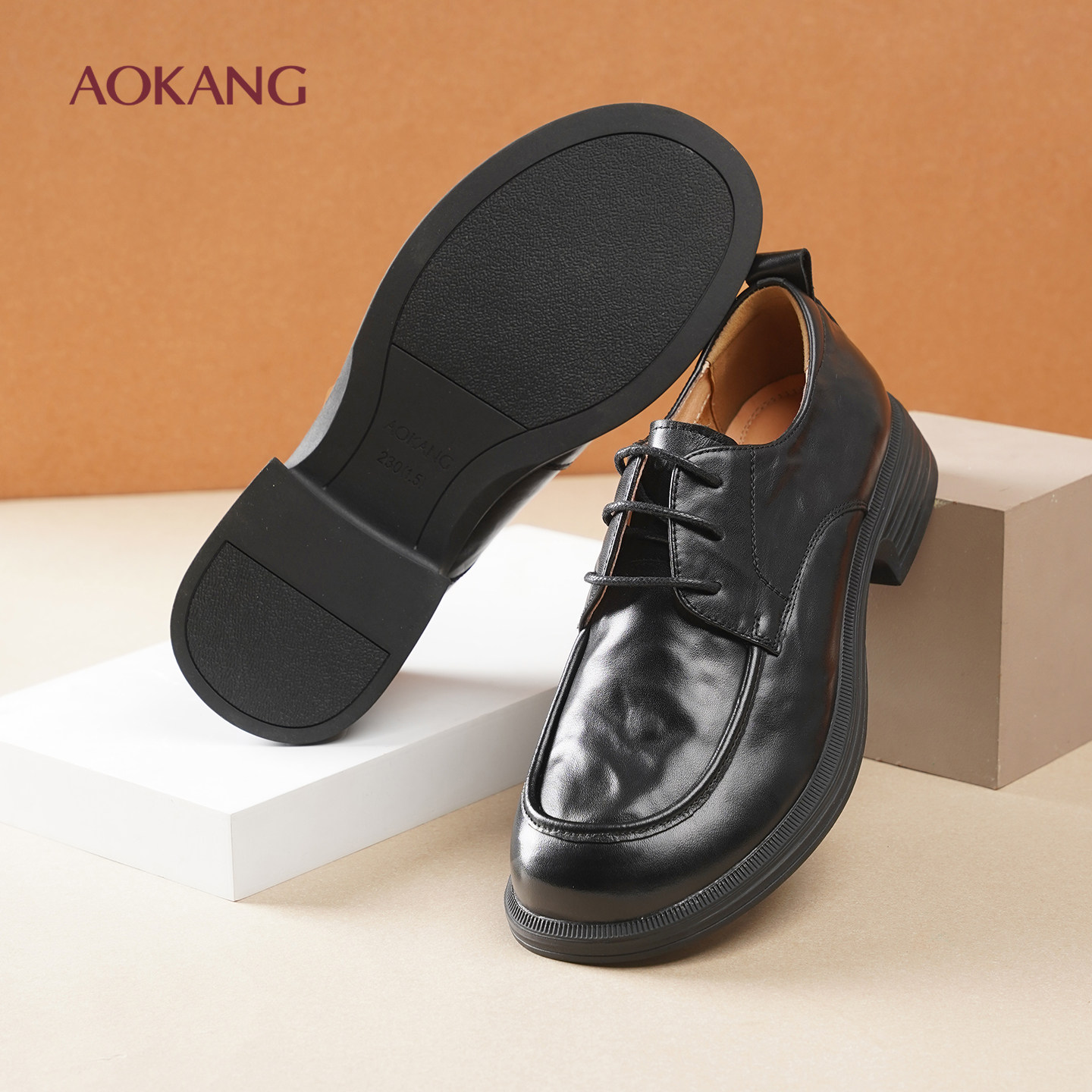 奥康 女鞋2026春季新款厚底圆头乐福鞋英伦时尚低跟通勤小皮鞋L