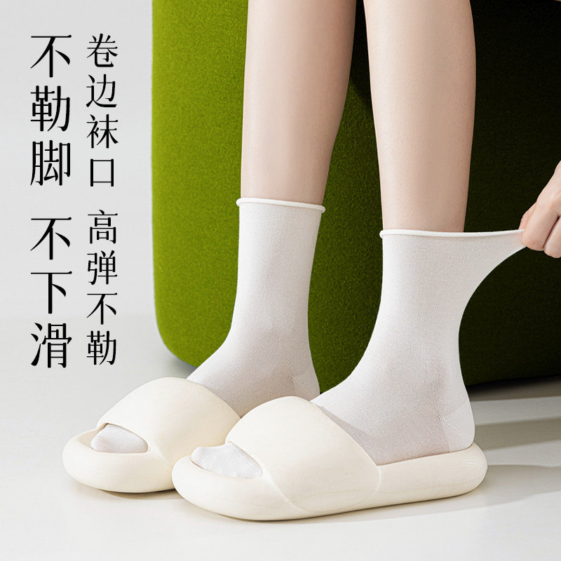 莫代尔卷边袜子女2025新款夏季薄款凉感袜