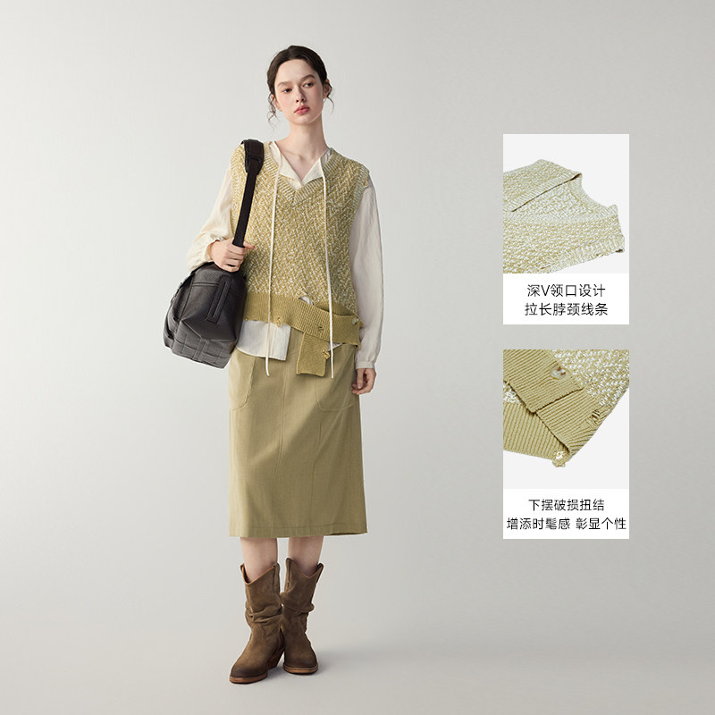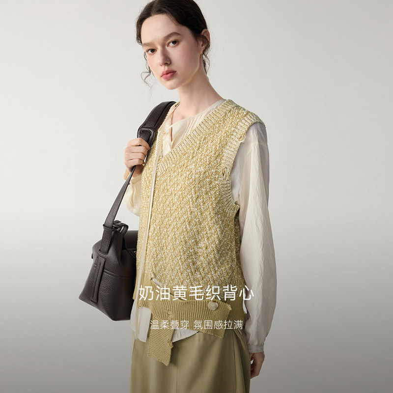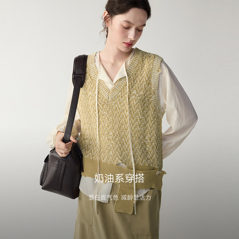 【做旧毛边】MSLAN浅春系精致通勤亚麻针织背心马夹MGAW157