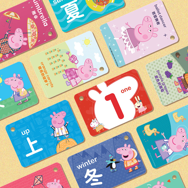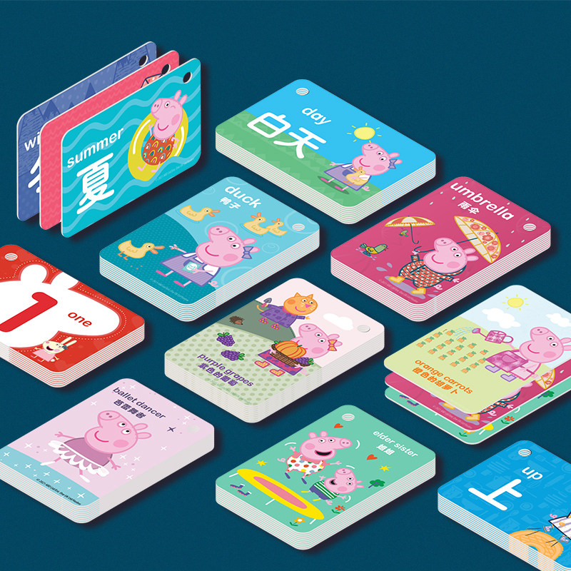 适用乐学说小蝌蚪机器岛牛书童易趣小猪佩奇双语认知卡 绘本故事人际交往儿童早教英语启蒙卡片100张点读笔