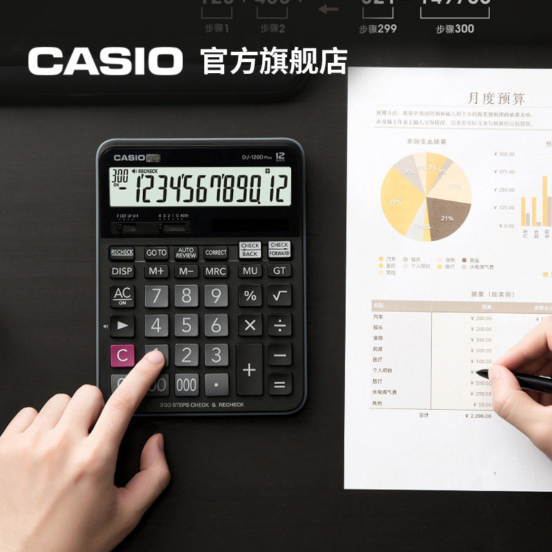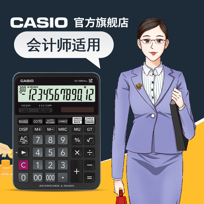 Casio/卡西欧 DJ-120Dplus办公计算器财务商务办公文具用品会计多功能型太阳能银行超市学生