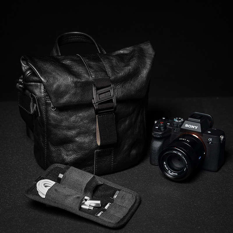 吉卡尼 真皮男士斜挎包复古锁扣邮差包单反微单软皮数码相机背包