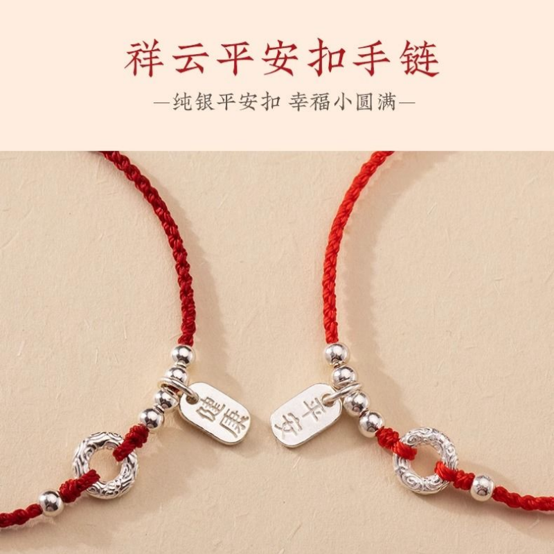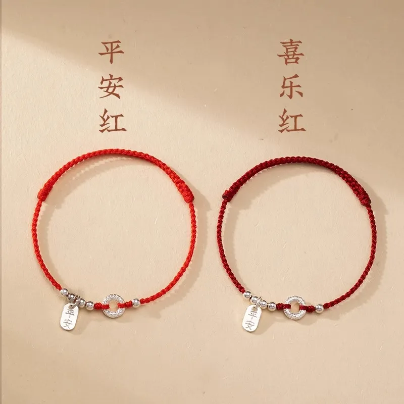 2026年马年红绳手链手工编织好运脚链情侣细手绳平安扣小众礼物