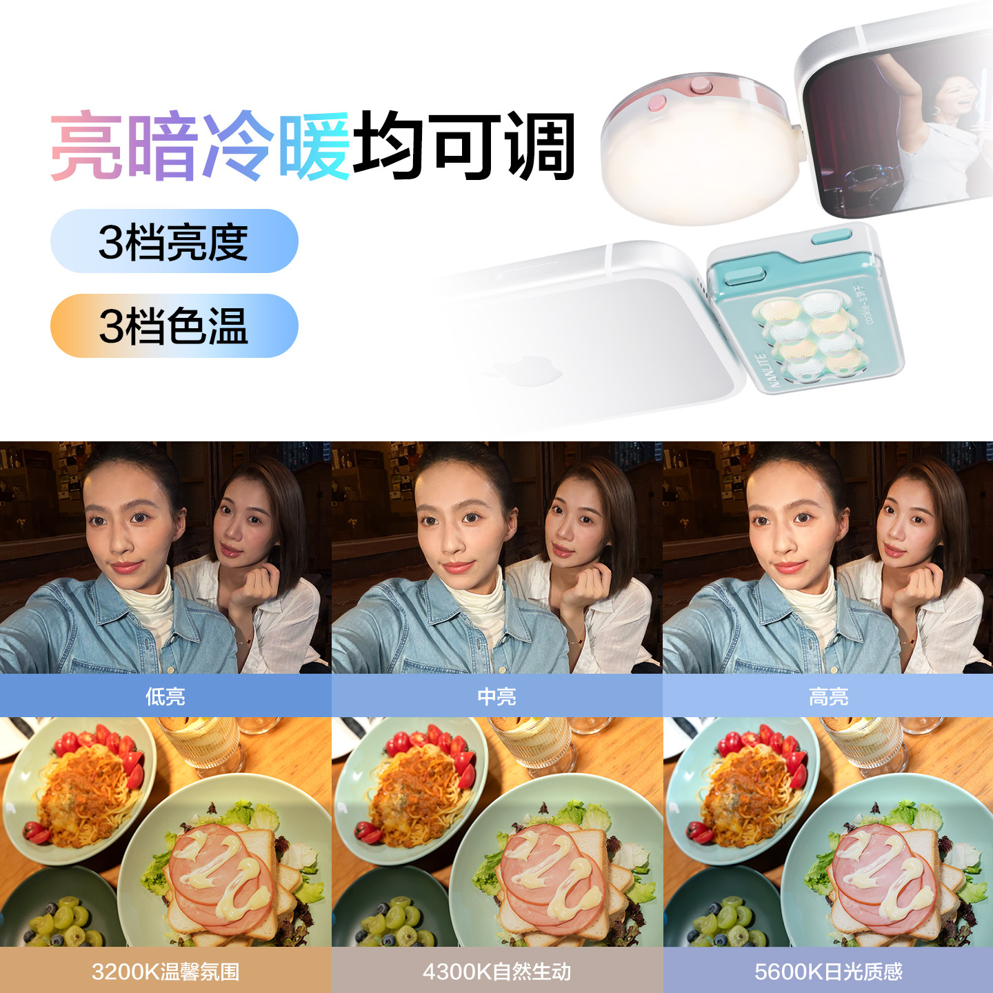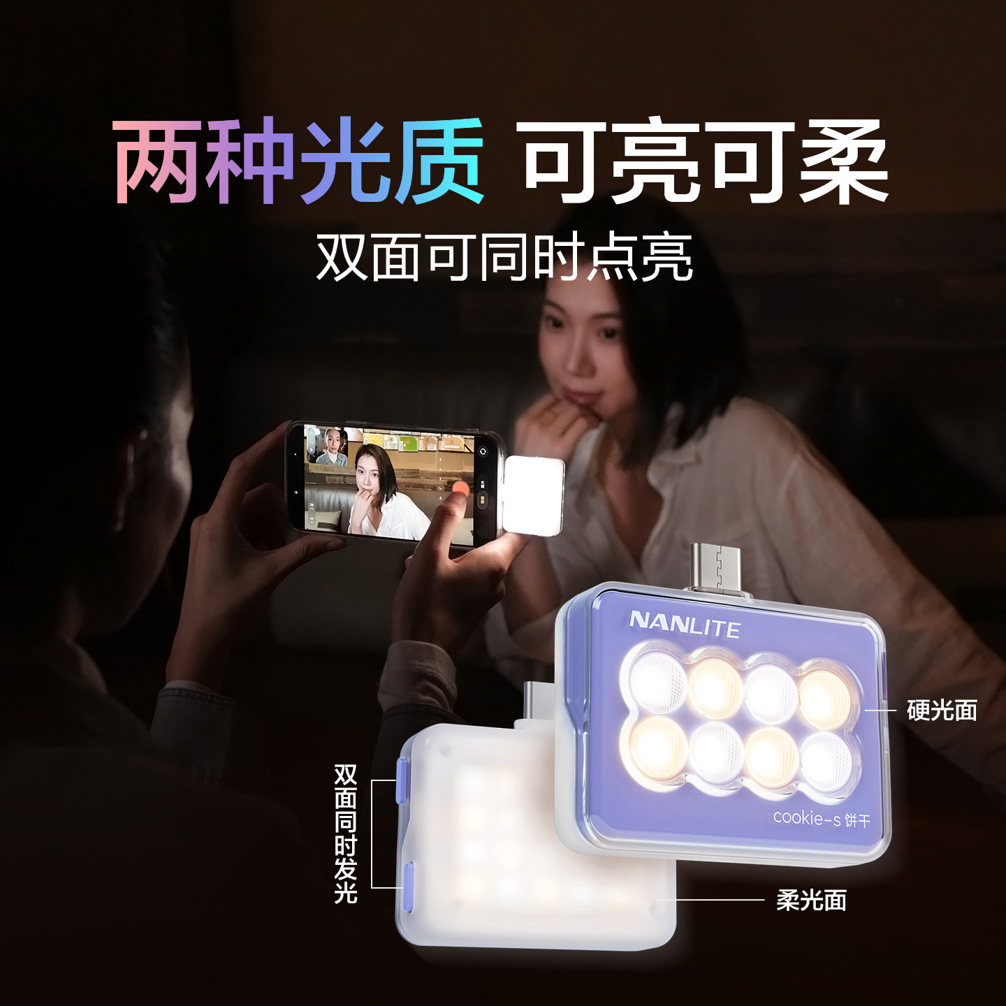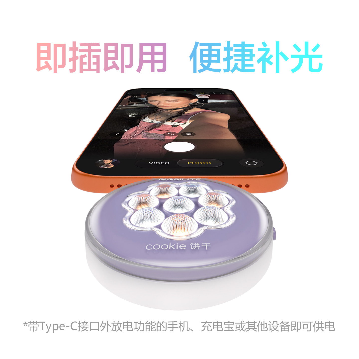 Nanlite南光cookie饼干双色温type-c供电迷你口袋双面大疆pocket3补光灯下巴颈纹灯直播自拍手机灯