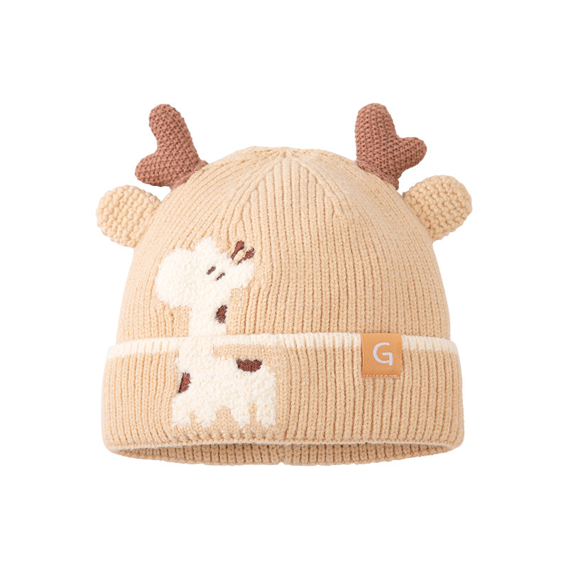 hugz儿童帽子男孩女孩保暖针织毛线帽秋冬季户外护耳防风熊仔帽子