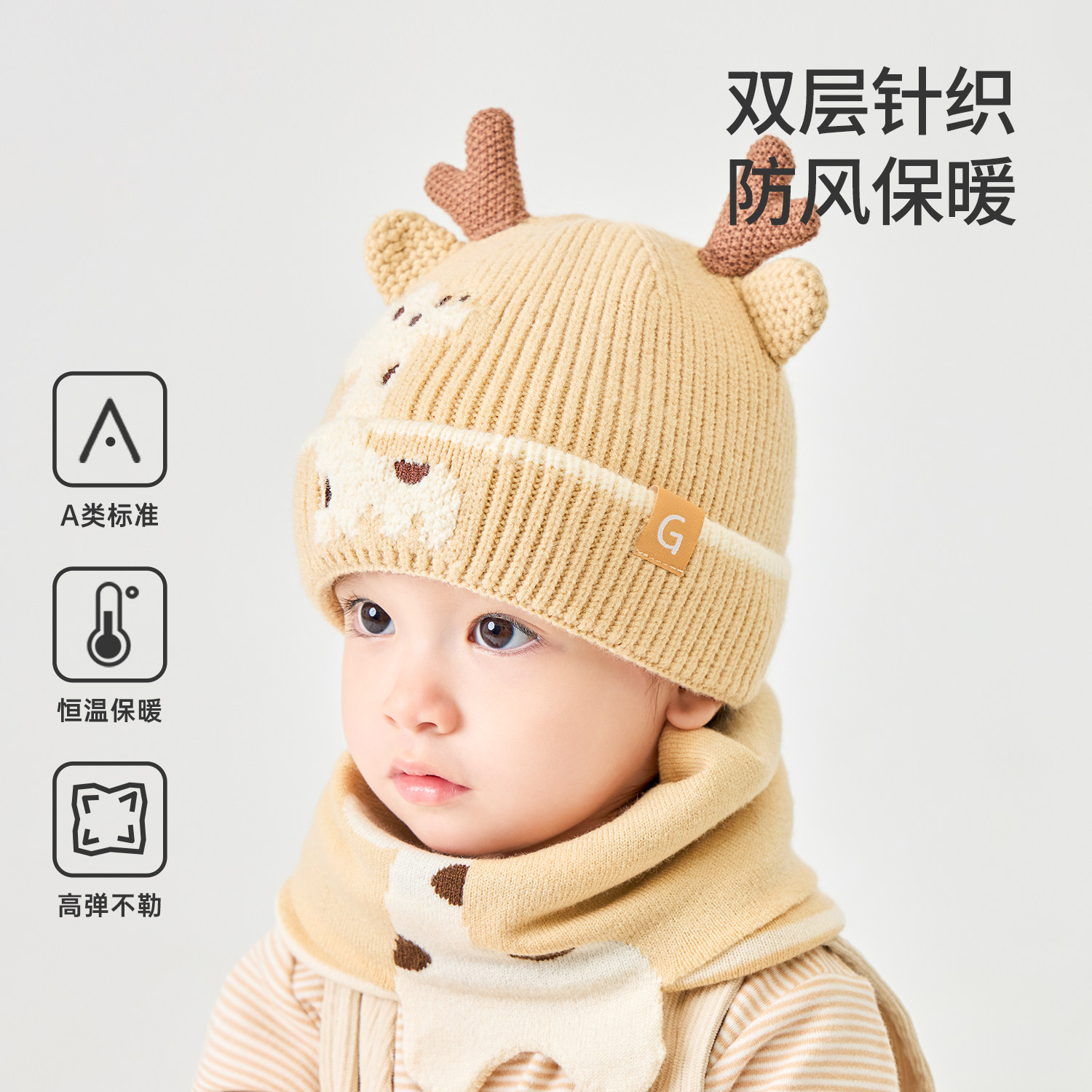宝宝帽子秋冬围脖男童针织保暖毛线帽婴儿冬季加厚护耳帽儿童冬帽