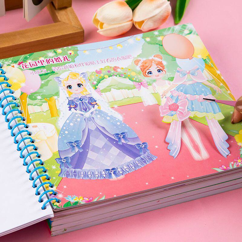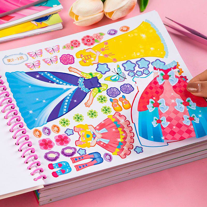 新款公主换装贴纸书女孩卡通粘贴贴画3-6岁儿童动脑益智早教贴画