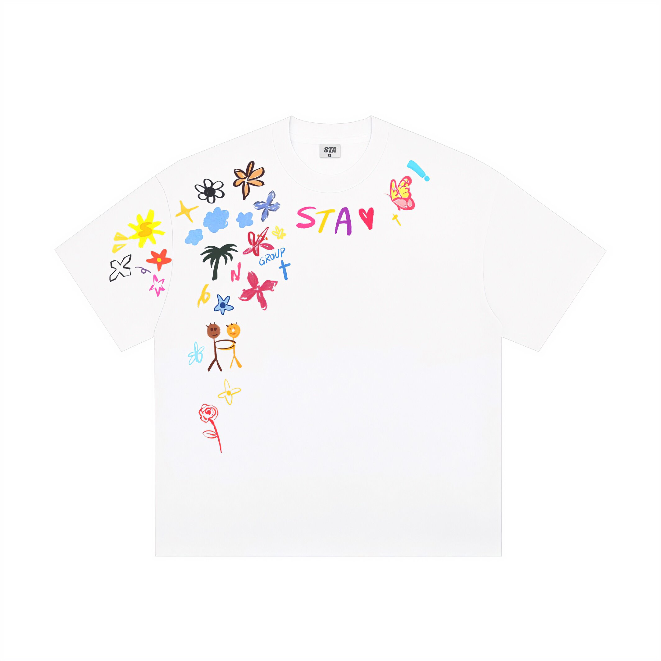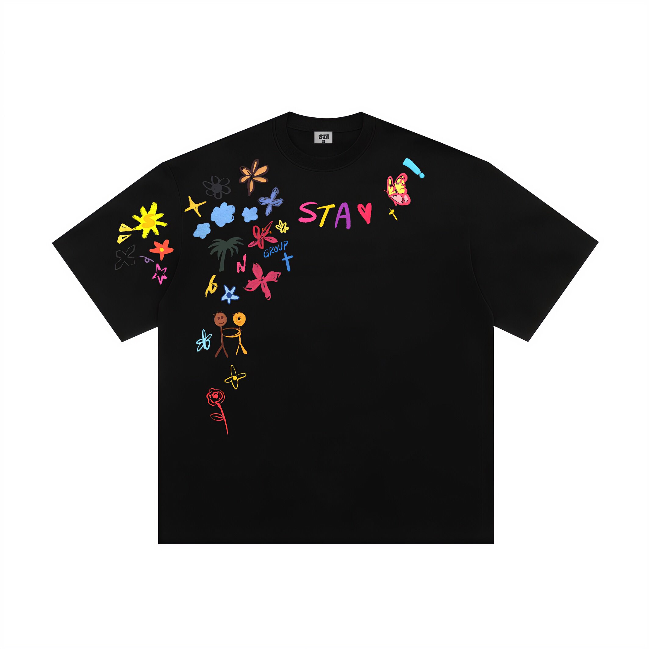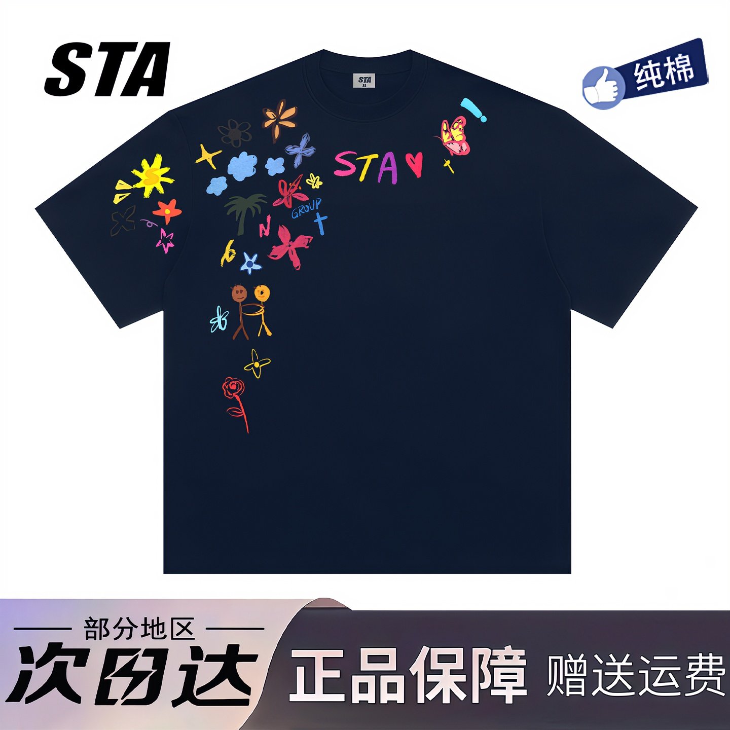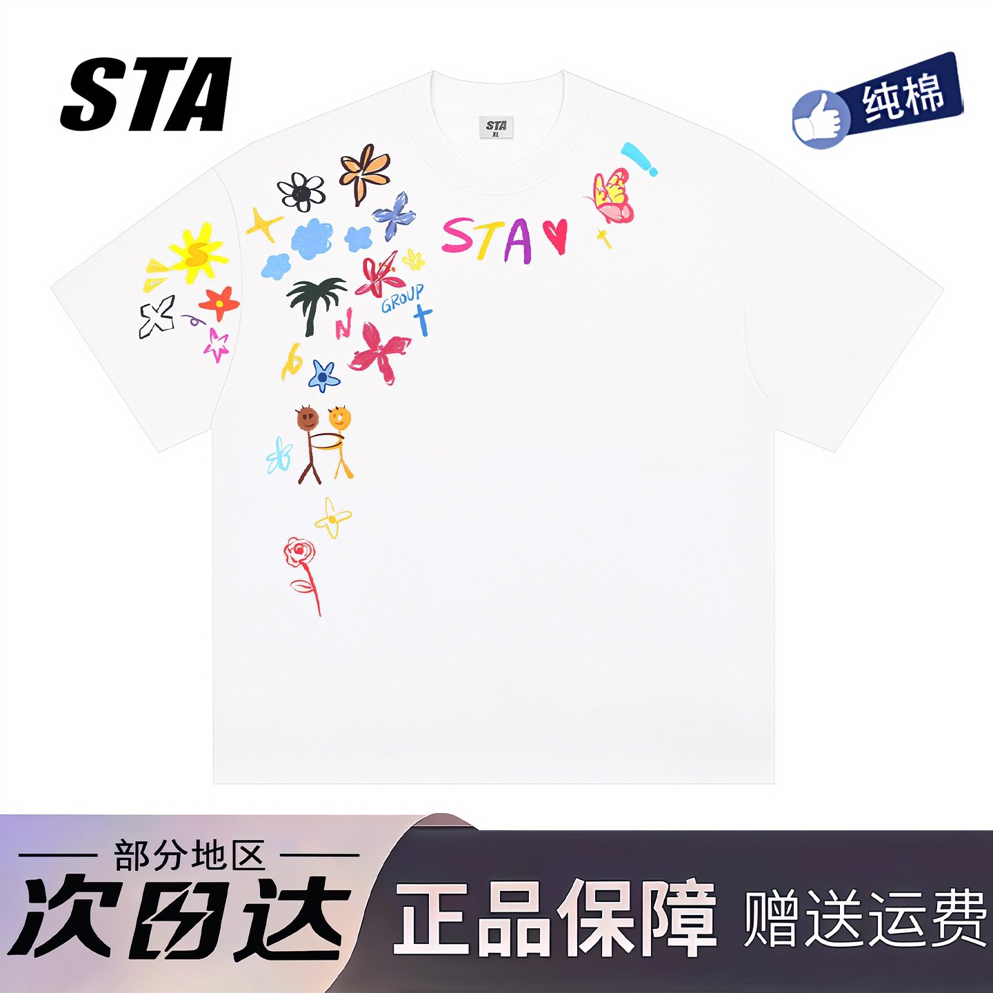 STA旗舰店美式潮牌涂鸦印花短袖男女夏季高街复古重磅纯棉情侣t恤