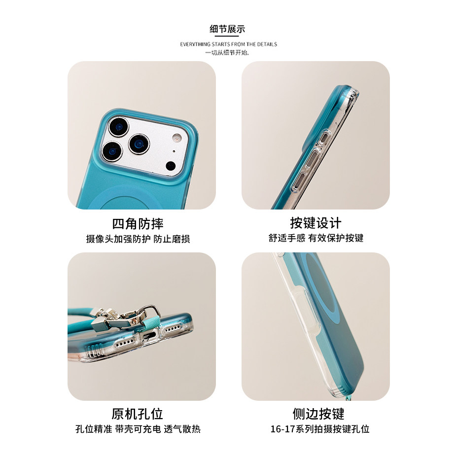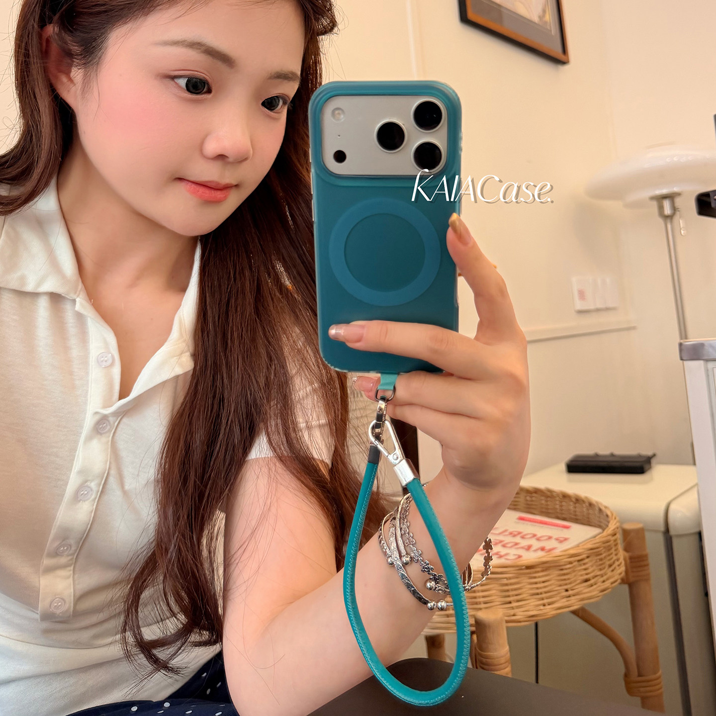 kaia 日韩风简约高级感孔雀蓝适用苹果17promax手机壳iphone16pro新款13女14pro手提挂绳15pro全包防摔手机套