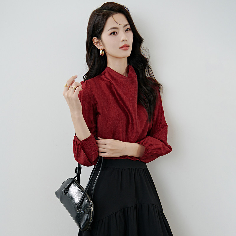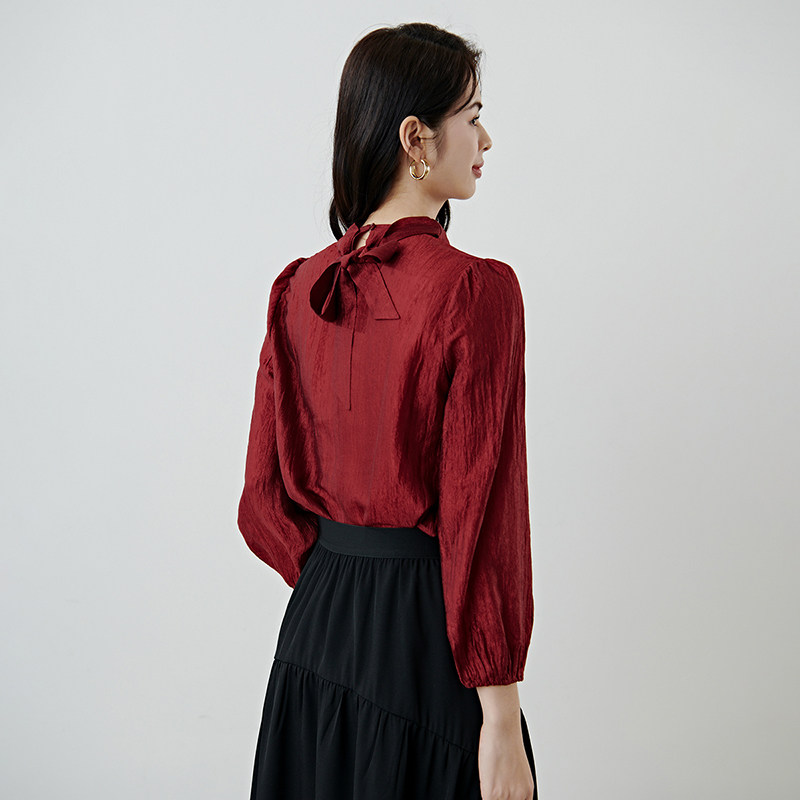 晚白2026年春新款复古港风荡领醋酸上衣丝光柔软气质显白衬衫女