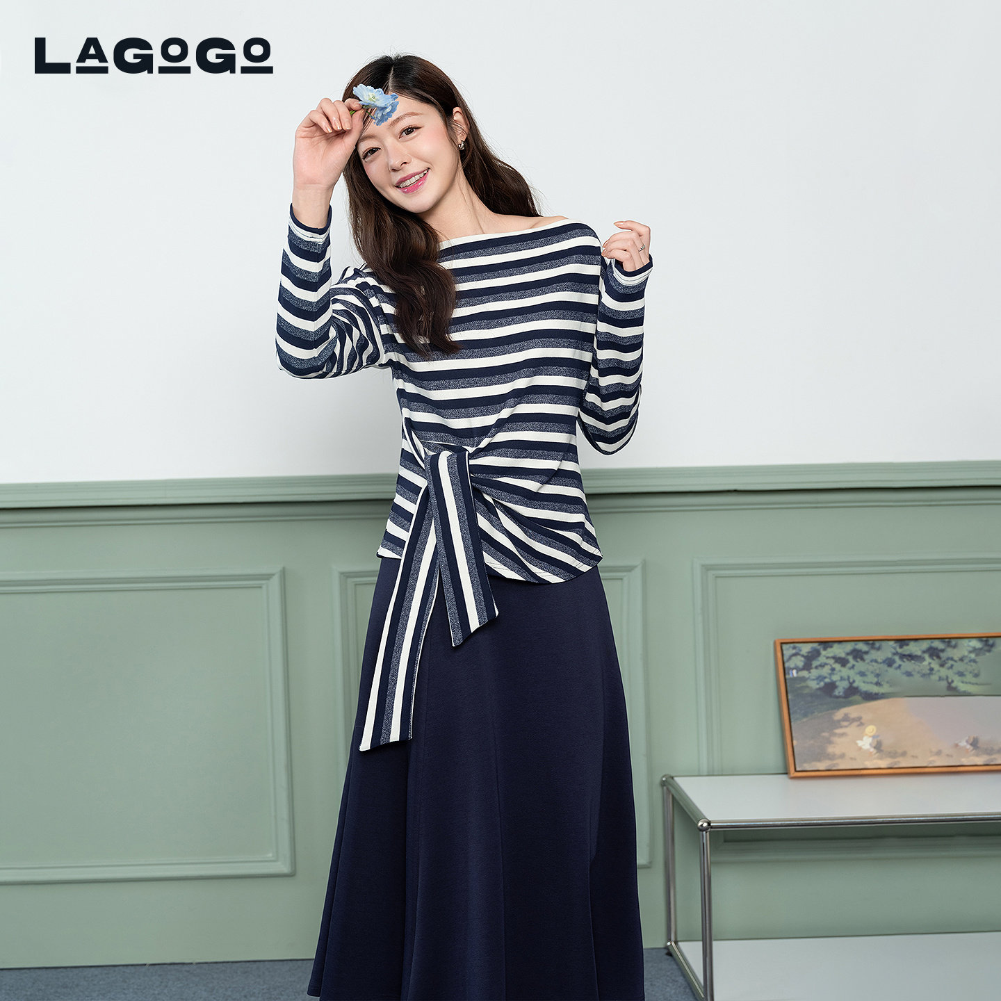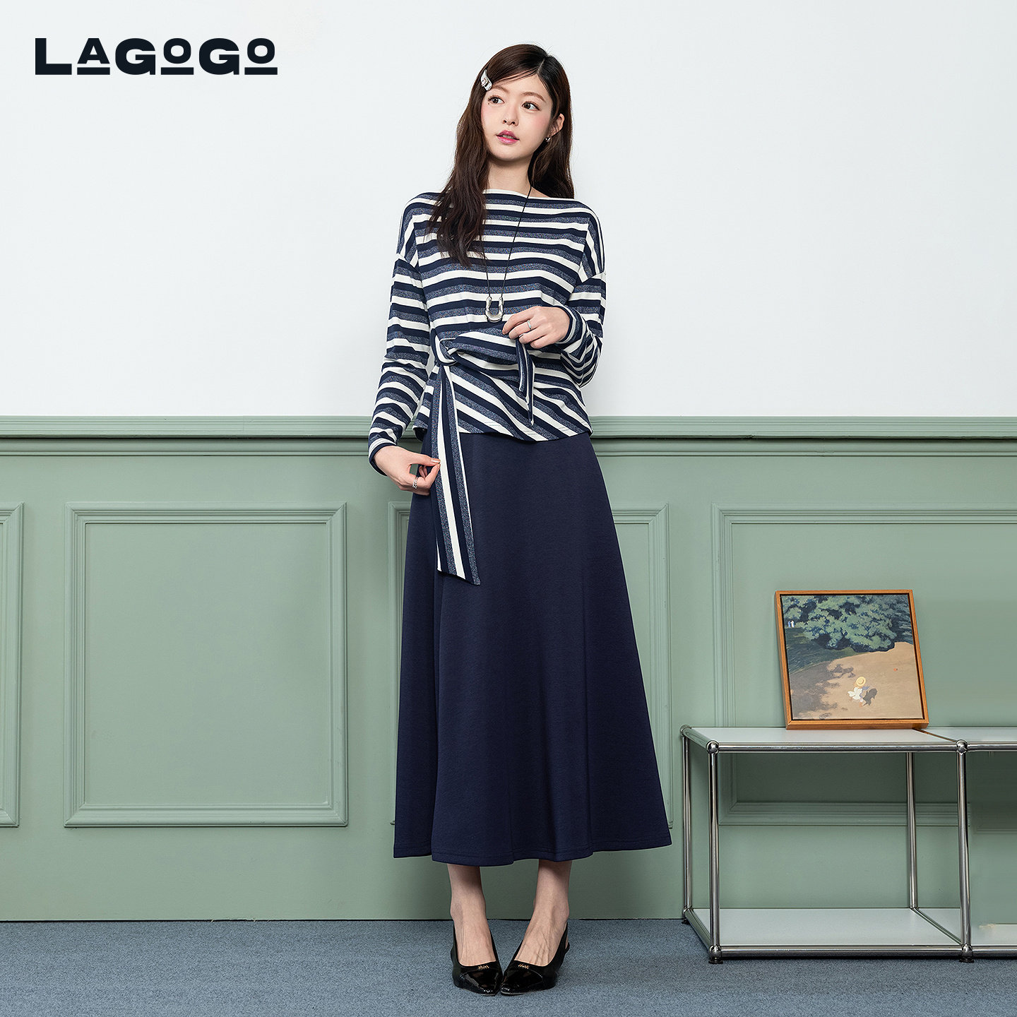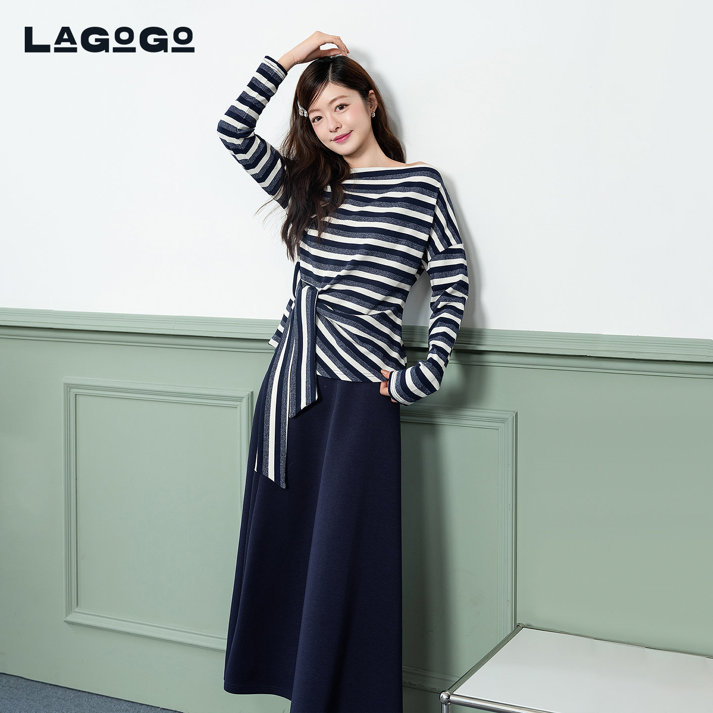 LAGOGO条纹优雅裙子两件套女拉谷谷2026春新款时尚套装PBUU121B67