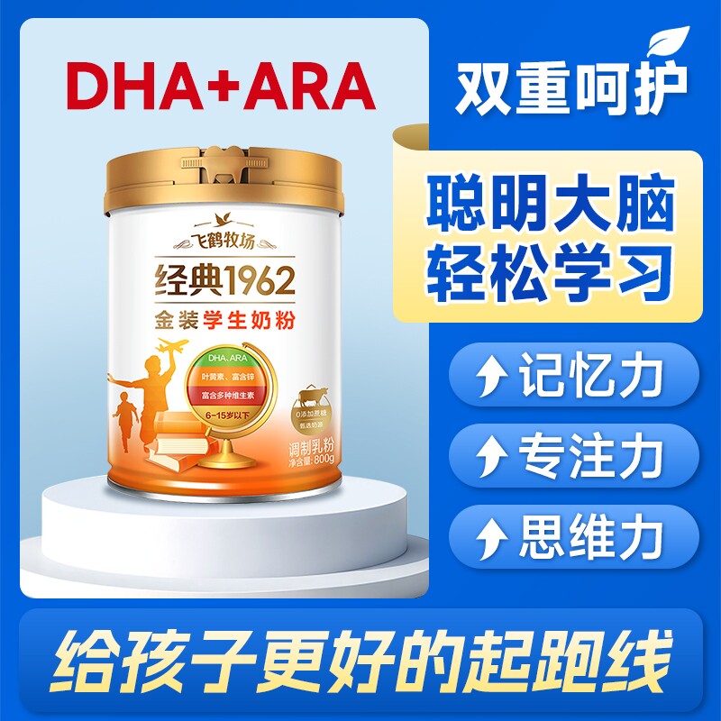 飞鹤金装1962高锌高钙儿童青少年成长奶粉营养学生学习奶粉含DHA