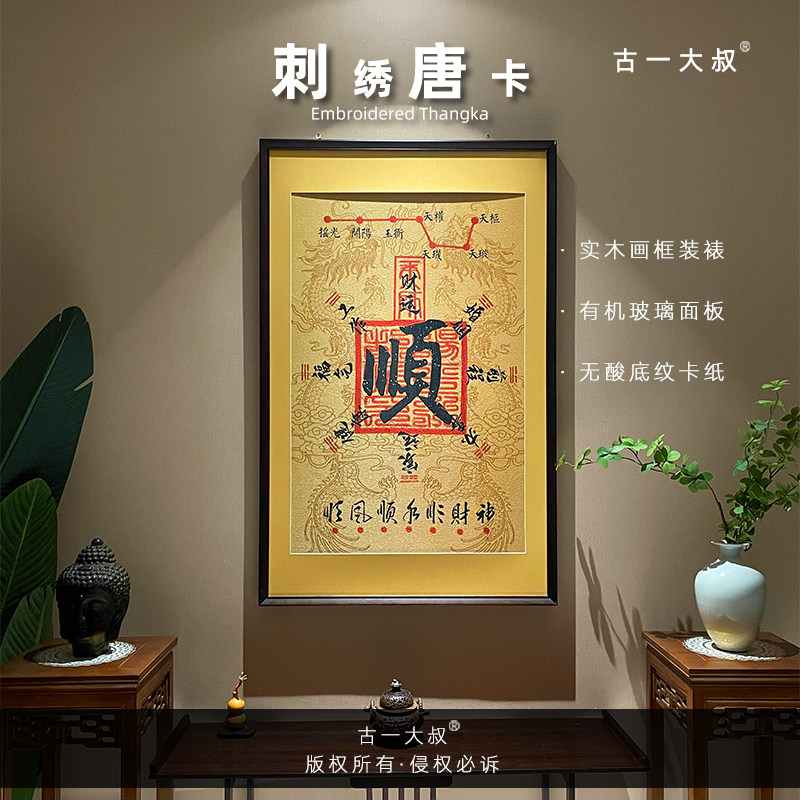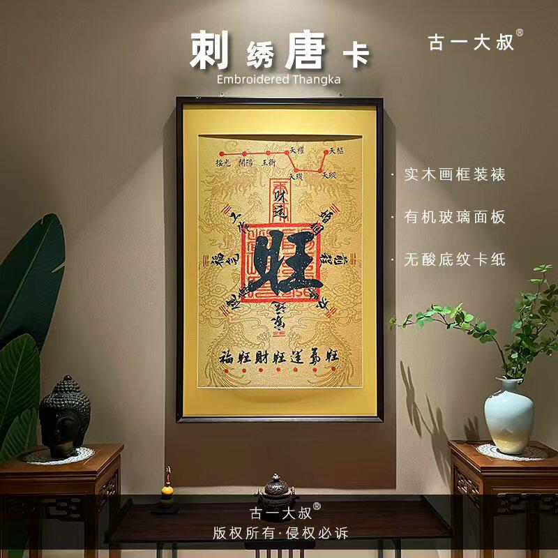 起势实木装裱刺绣织锦挂画开金库办公室茶室玄关书房客厅背景装饰