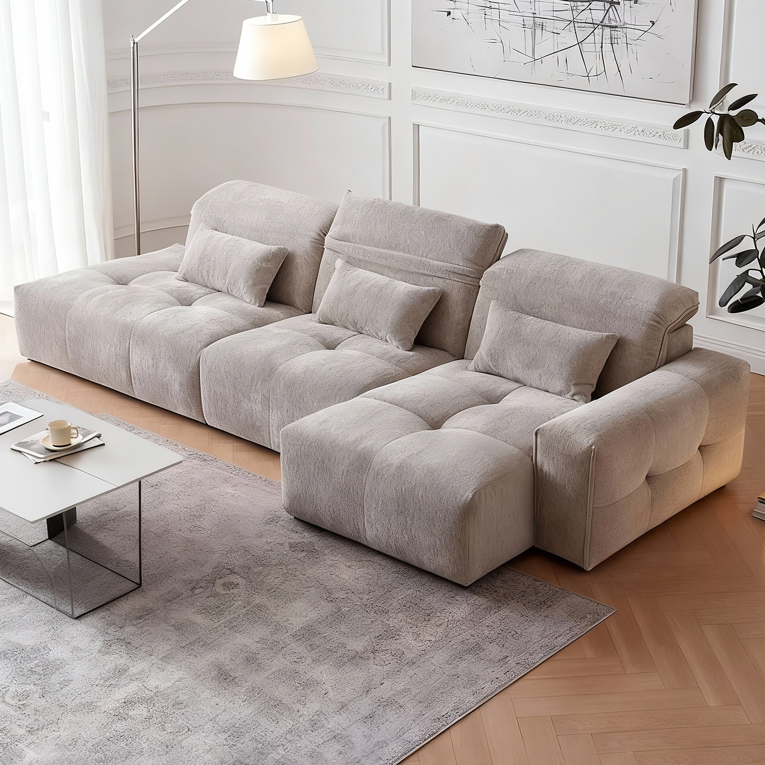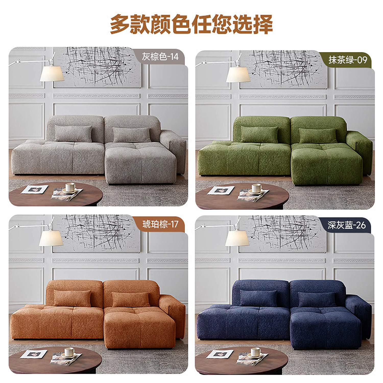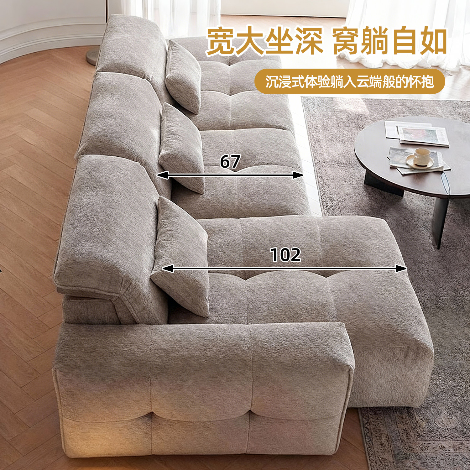 上进可全拆洗像素转角雪尼尔绒贵妃TUSU欧帕尔豆腐块吐司布艺沙发