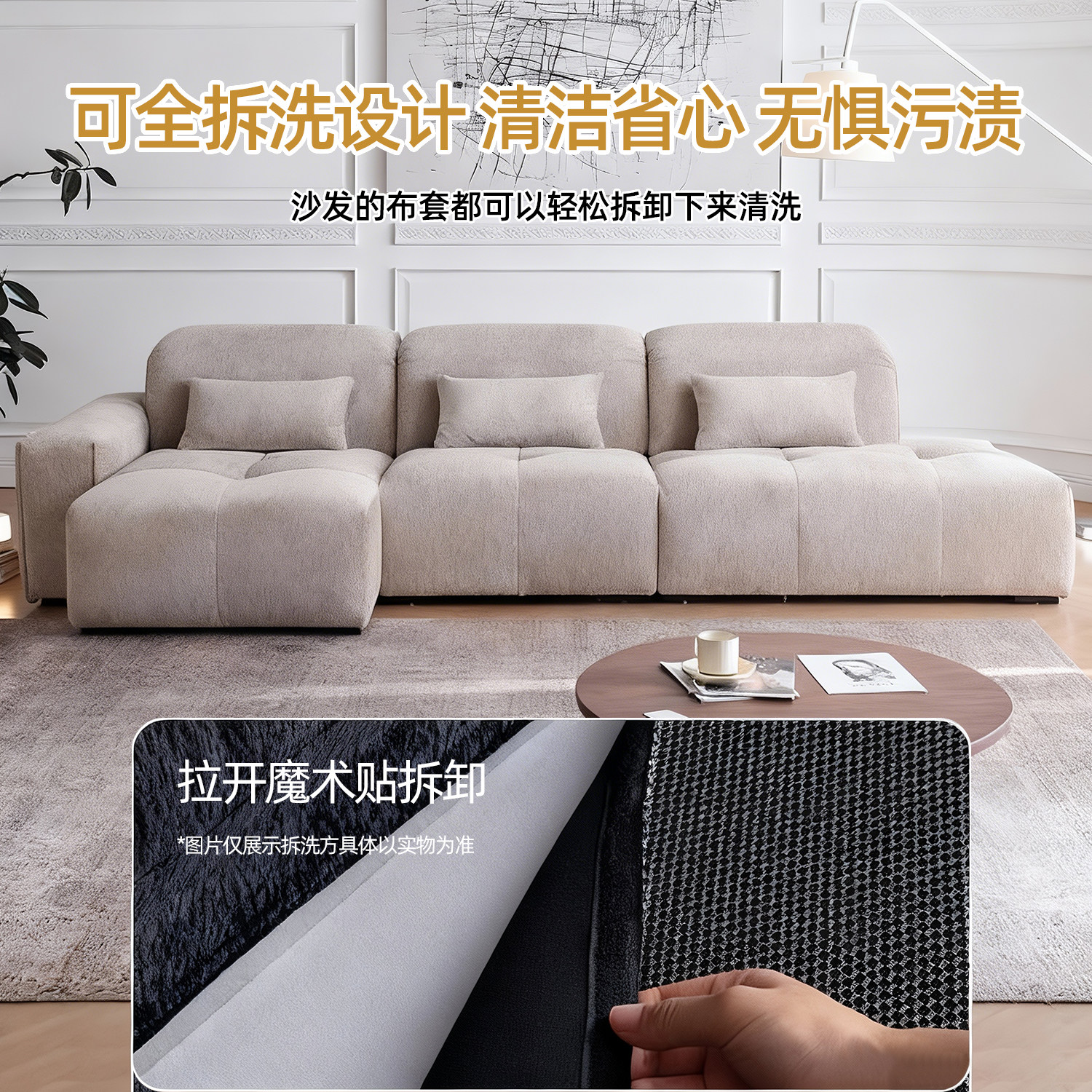 奶油风布艺沙发客厅2025新款小户型家用可拆洗三人位直排云朵沙发