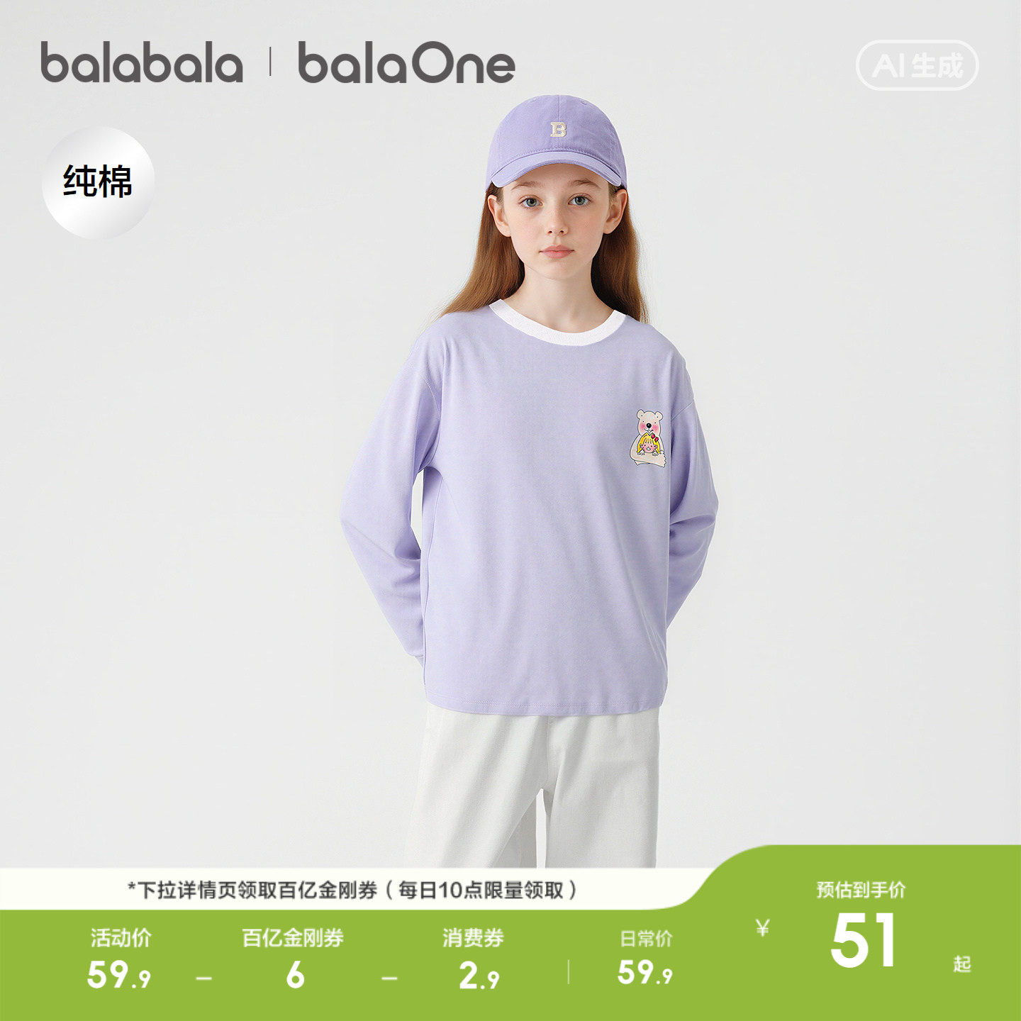巴拉巴拉童装女童长袖t恤儿童2026春季新款上衣大童纯棉打底衫潮