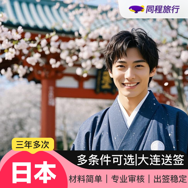 日本·三年多次旅游签证·大连送签·同程 日本签证三年多次个人旅游收入20万退休自由在职简化办理Q