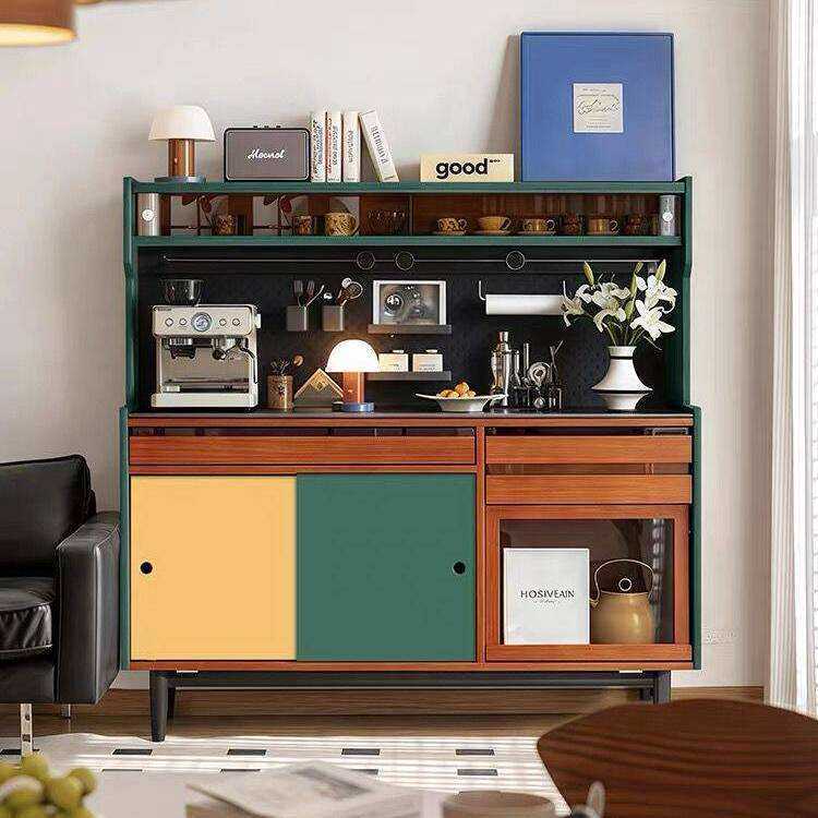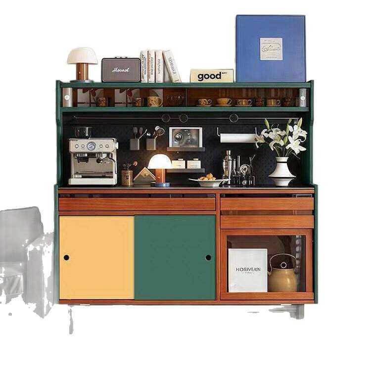 实木岩板餐边柜储物柜靠墙一体置物柜家用小户型收纳咖啡柜茶水柜