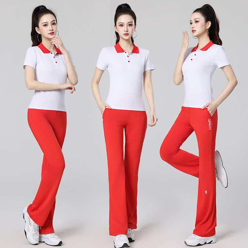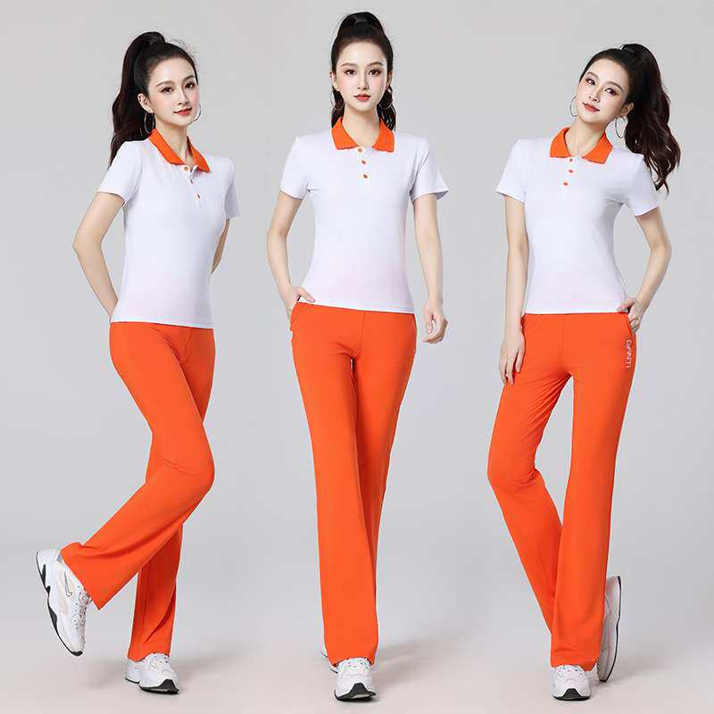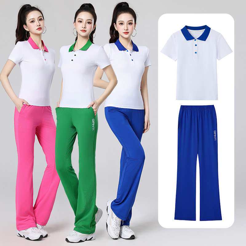 广场舞服装新款时尚polo领休闲运动服春夏短袖曳步舞蹈团体服套装