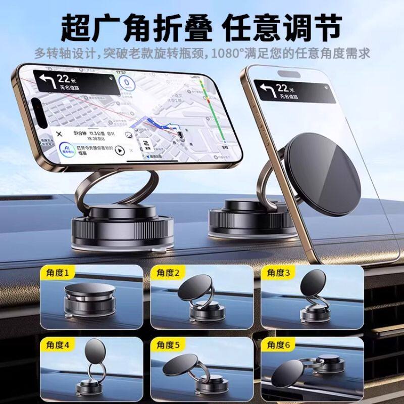 真空吸附磁吸车载手机支架2025新款吸盘车内导航手机架magsafe无线磁吸伸缩折叠便携架子墙壁通用神器