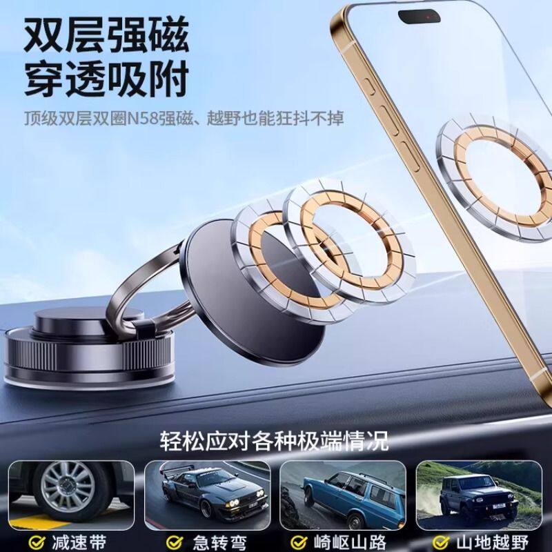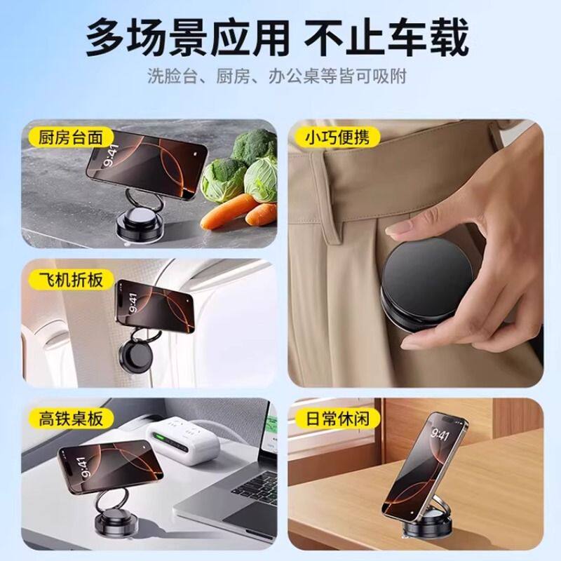 2026新款车载磁吸手机支架真空吸附magsafe汽车导航专用吸盘旋转折叠便携浴室多功能桌面墙壁通用支撑固定