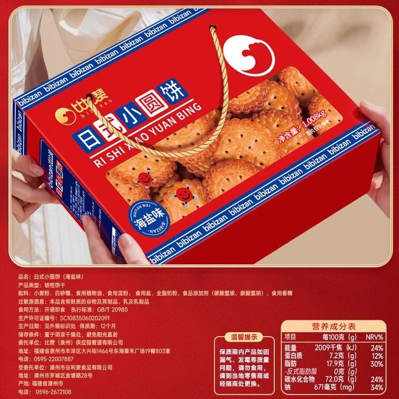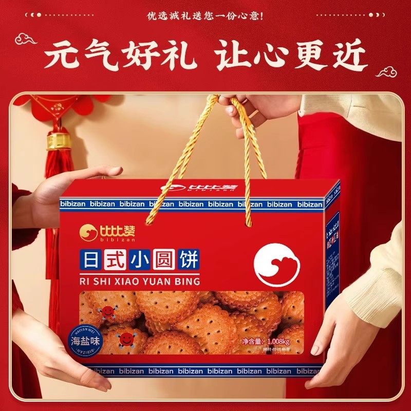 比比赞日式小圆饼干年货礼盒送人实用饼干小零食过年送礼休闲食品