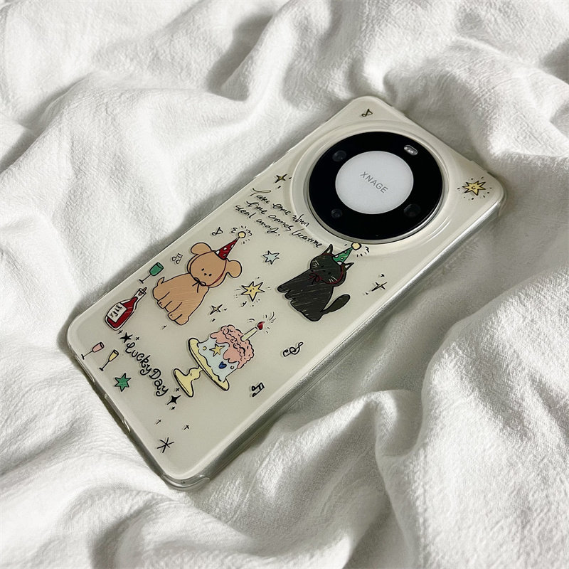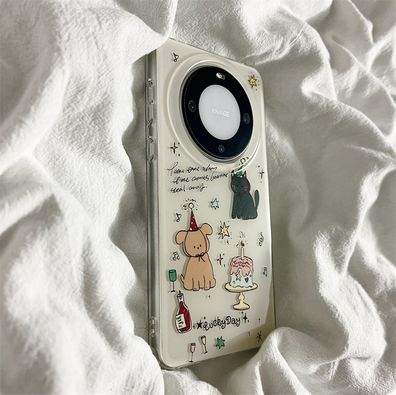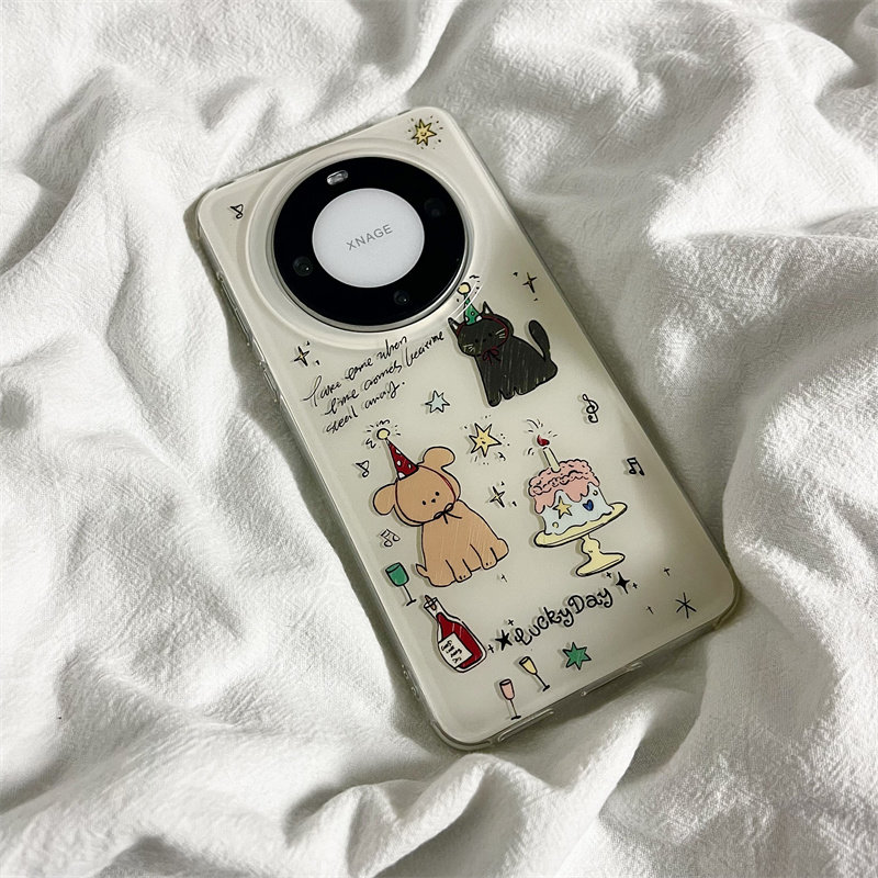 ins简约卡通蛋糕小猫狗狗适用华为mate60pro+手机壳mate70双层IMD工艺保护套pura70pro日韩少女pura80pro新款