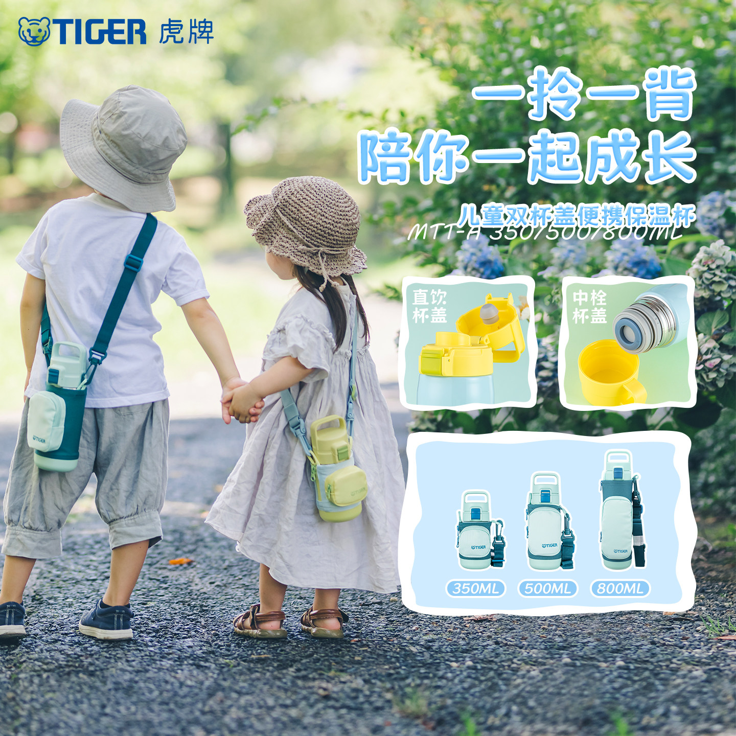 tiger虎牌儿童便携双杯盖保温杯学生弹盖水杯水壶女生包包杯MTT-A