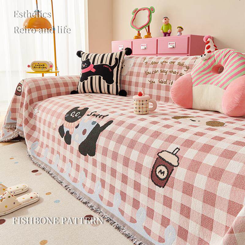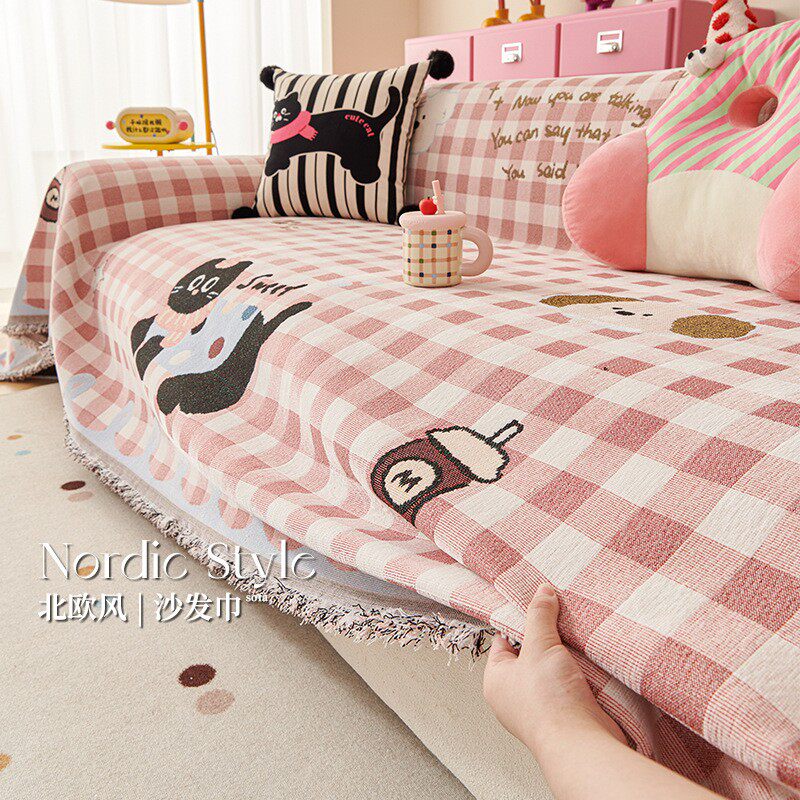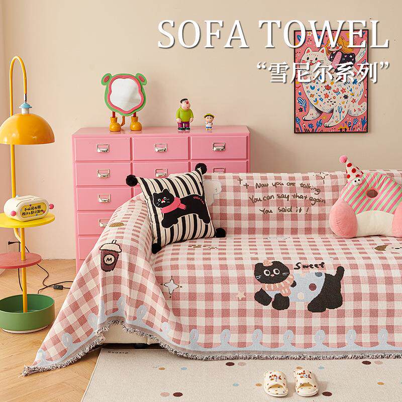 奶油风多巴胺沙发盖布通用2025新款沙发巾全盖防猫抓防滑沙发套垫