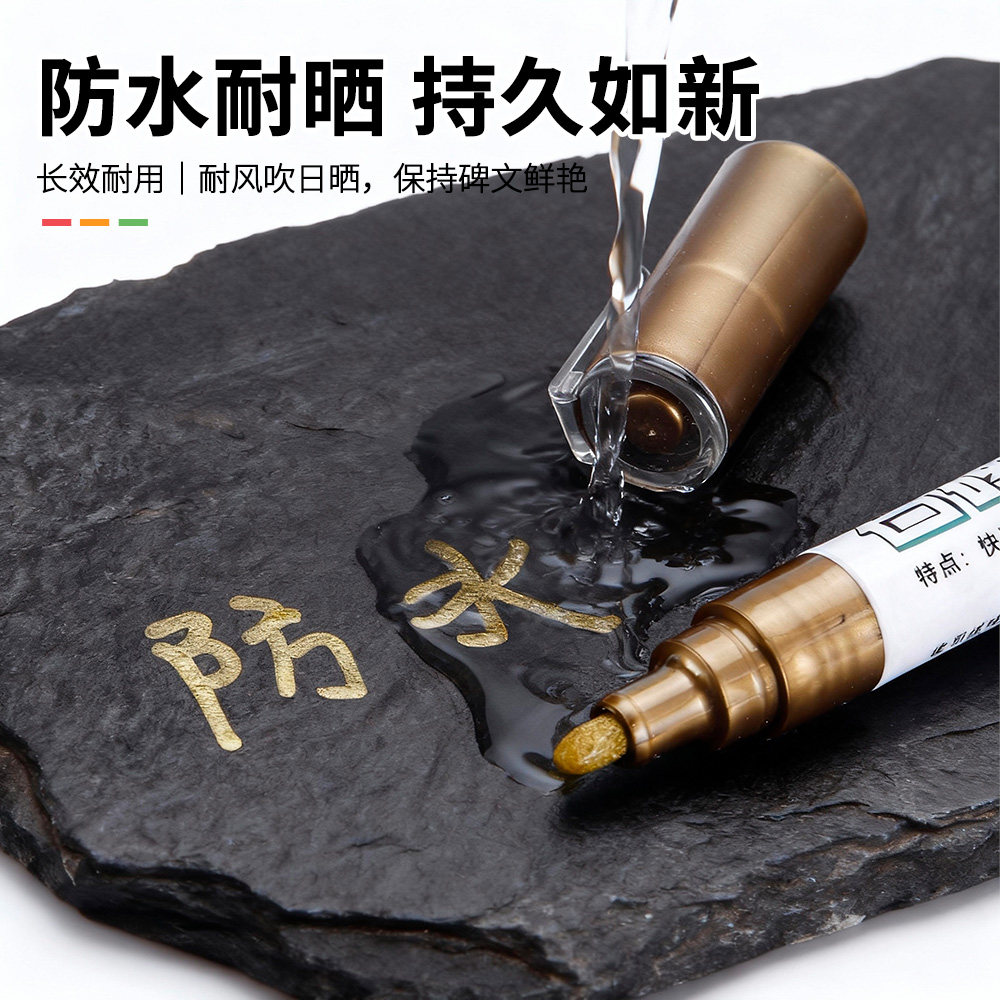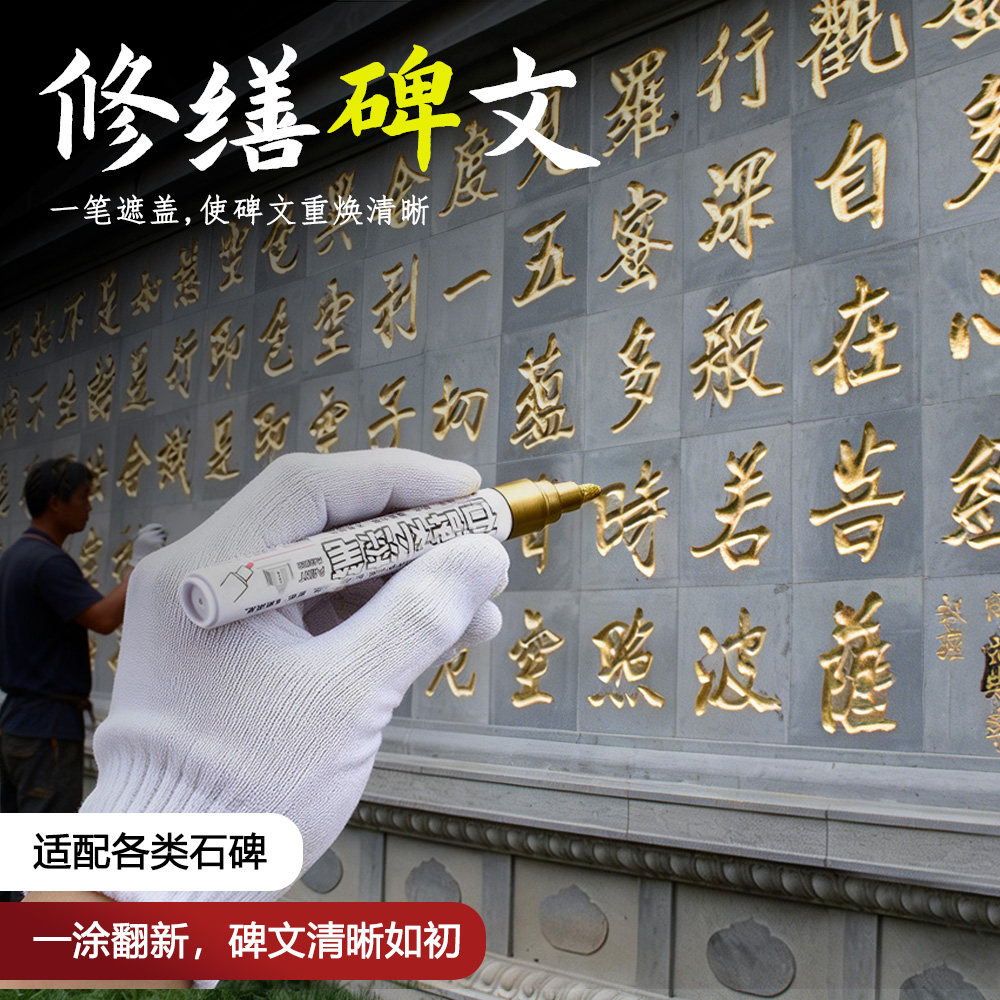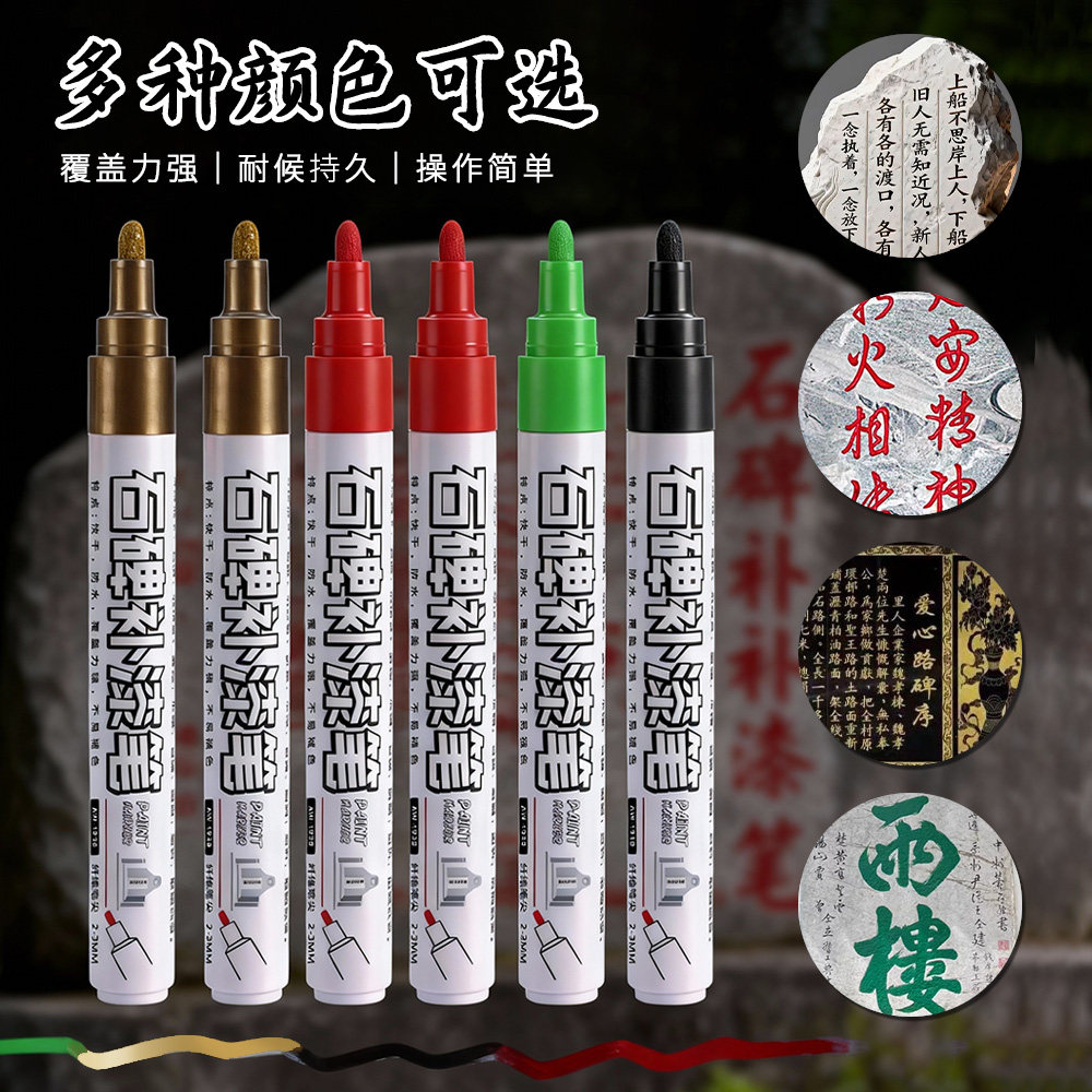 石碑补漆笔专用防水耐晒快干不褪色金红绿黑4色纤维笔尖2-3MM填色修复无痕景观石题字石碑文覆盖力强不易掉色